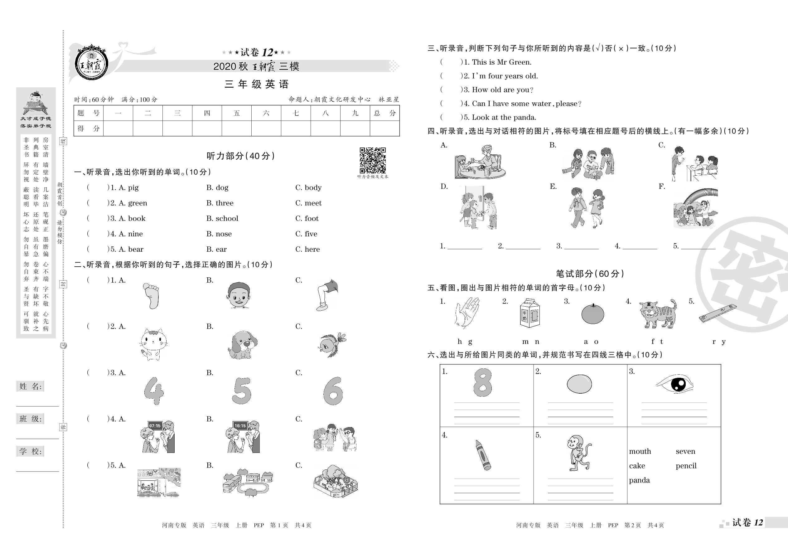 王朝霞期末模拟卷三年级上册英语(PEP版)_R210806183819【12】