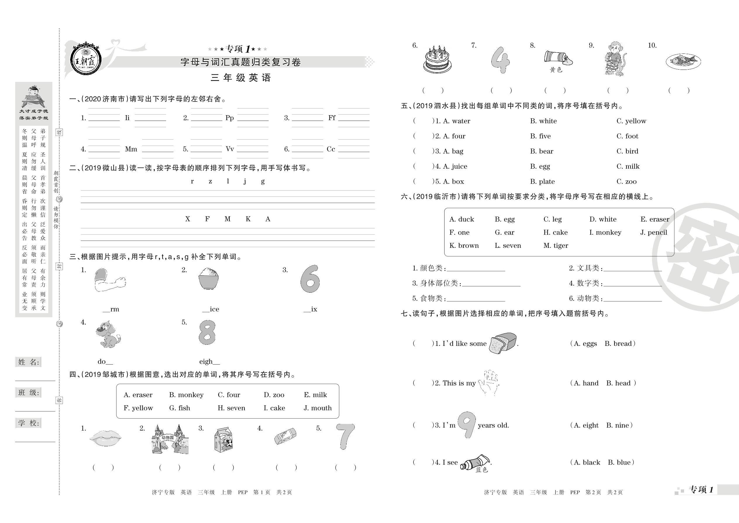 王朝霞期末专项卷——字母与词汇、句子与情景交际真题归类复习三年级上册英语(PEP版)_R210806183828【0】