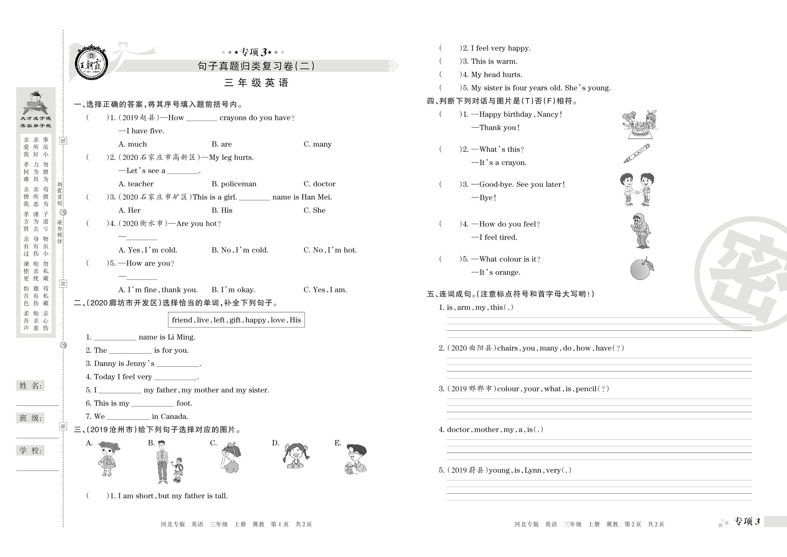 王朝霞期末专项卷——句子、情景交际三年级上册英语(冀教版)【0】