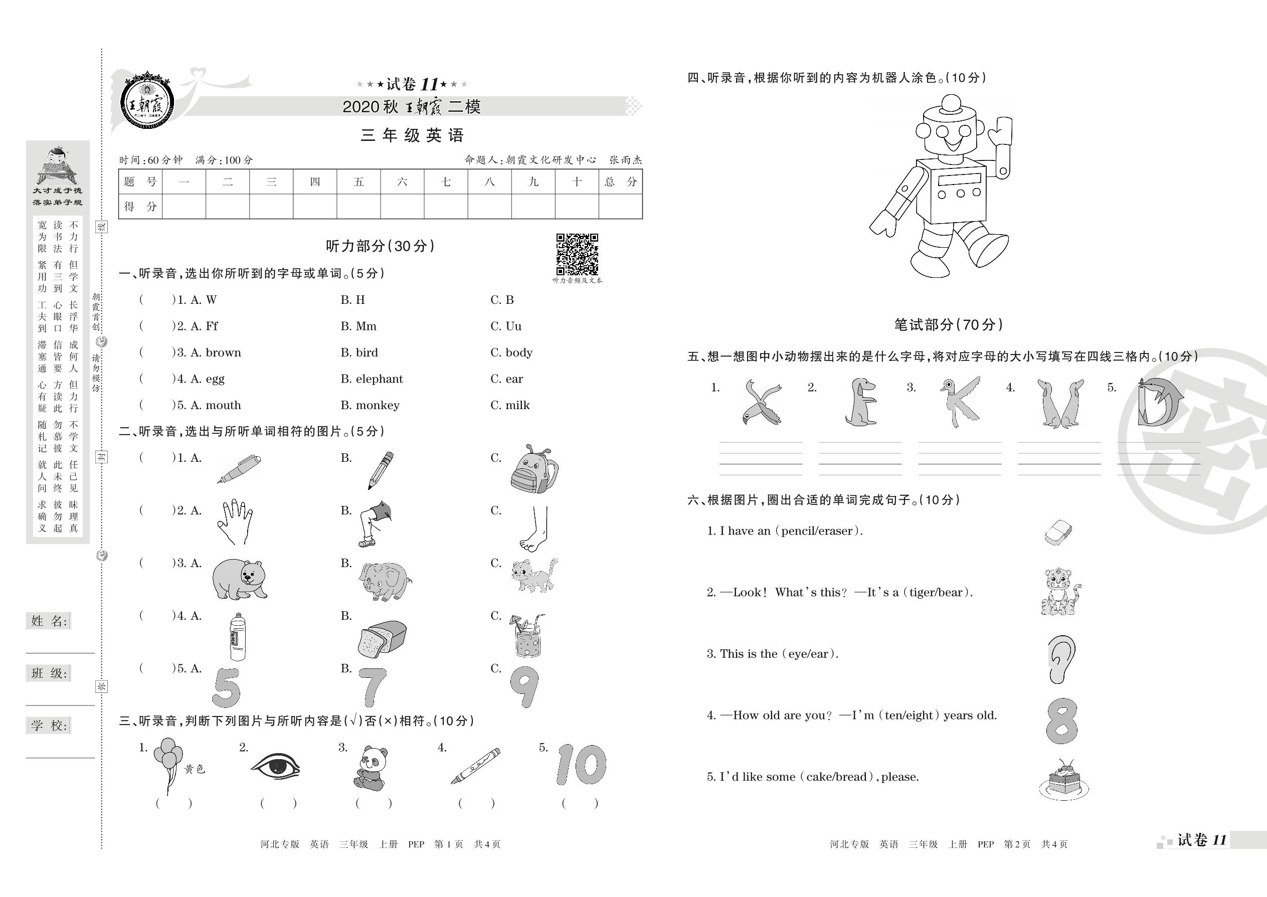 王朝霞期末模拟卷三年级上册英语(PEP版)_R210806184318【11】