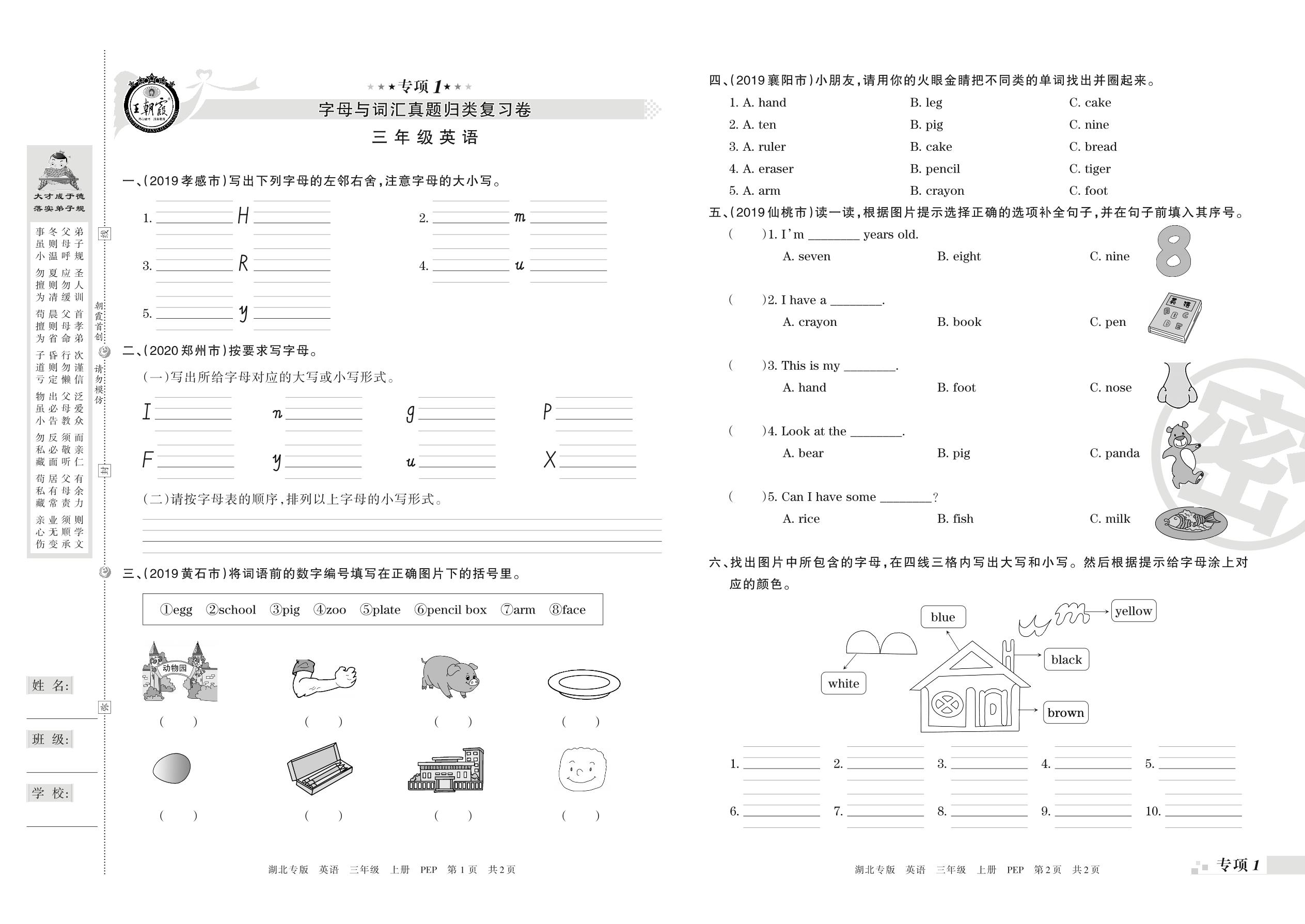 王朝霞期末专项卷——字母与词汇、句子与情景交际真题归类复习三年级上册英语(PEP版)_R210806184329【0】
