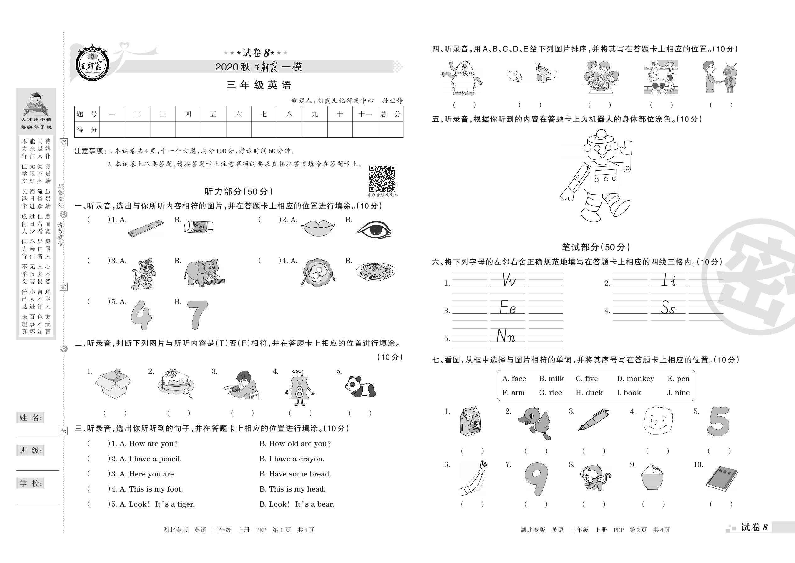 王朝霞期末模拟卷三年级上册英语(PEP版)_R210806184342【8】