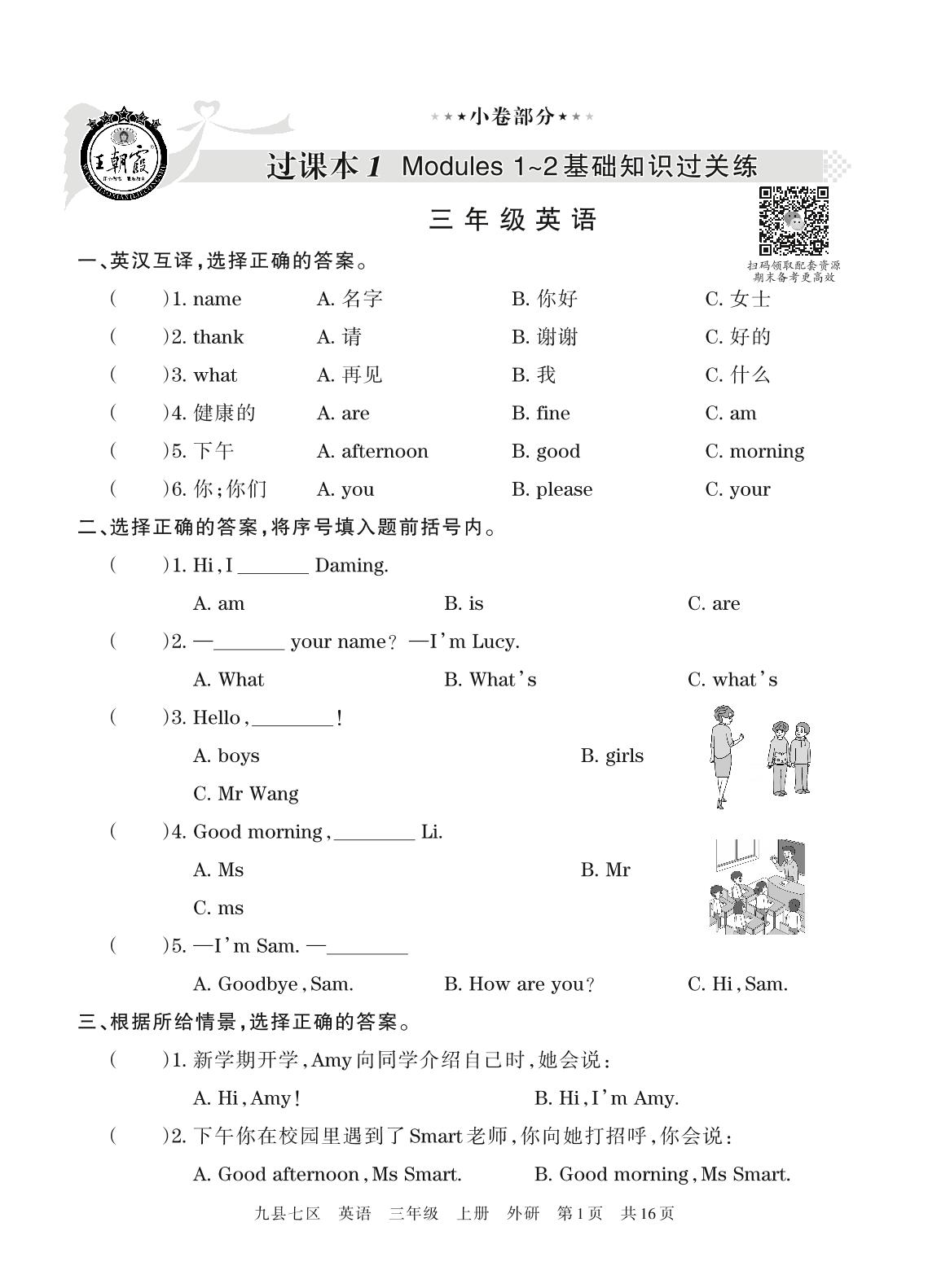 王朝霞期末过课本三年级上册英语(外研版)【0】