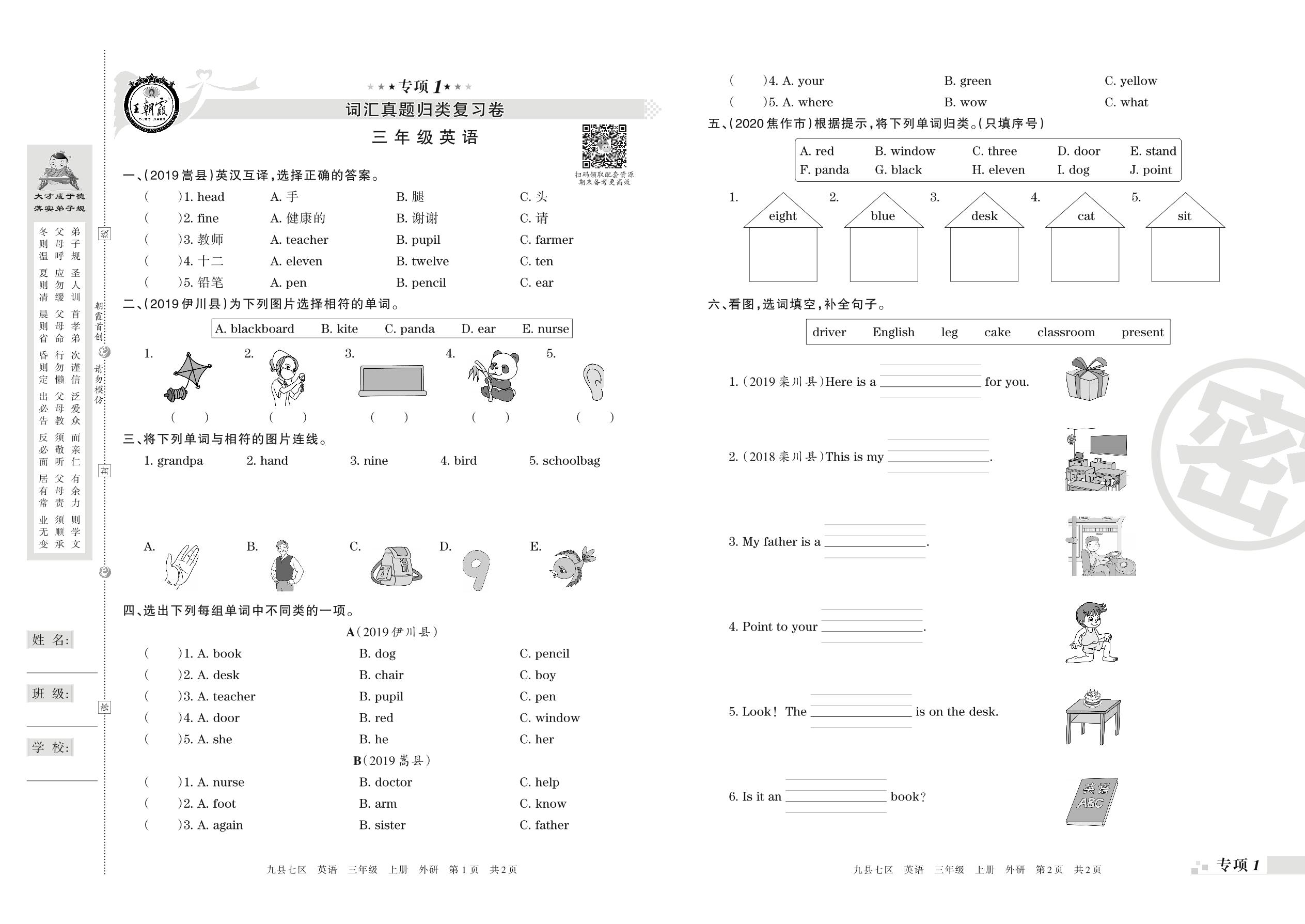 王朝霞期末专项卷——词汇、句子真题归类复习三年级上册英语(外研版)_R210806184455【0】