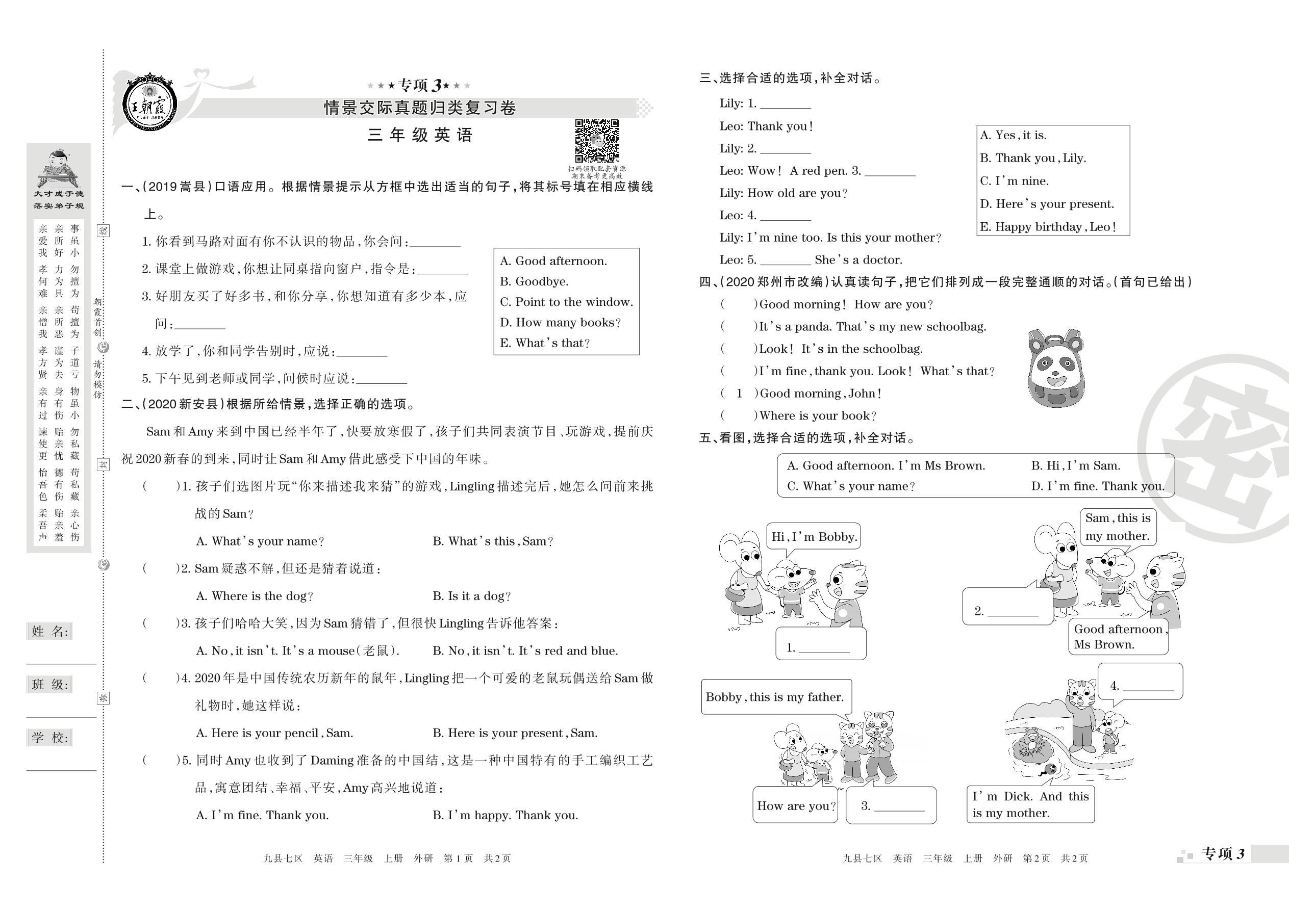 王朝霞期末专项卷——情景交际真题归类复习、绘本阅读三年级上册英语(外研版)_R210806184507【0】