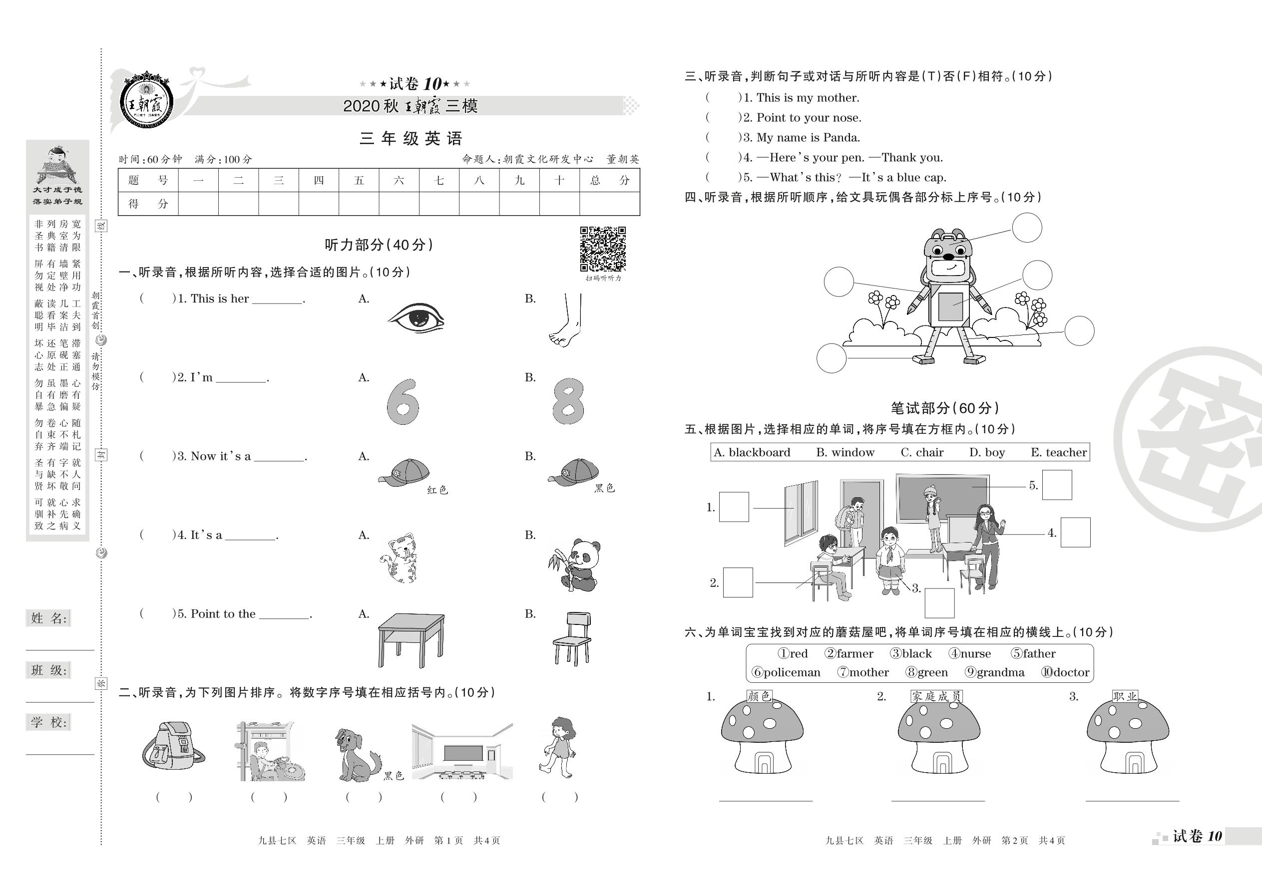 王朝霞期末模拟卷三年级上册英语(外研版)【10】