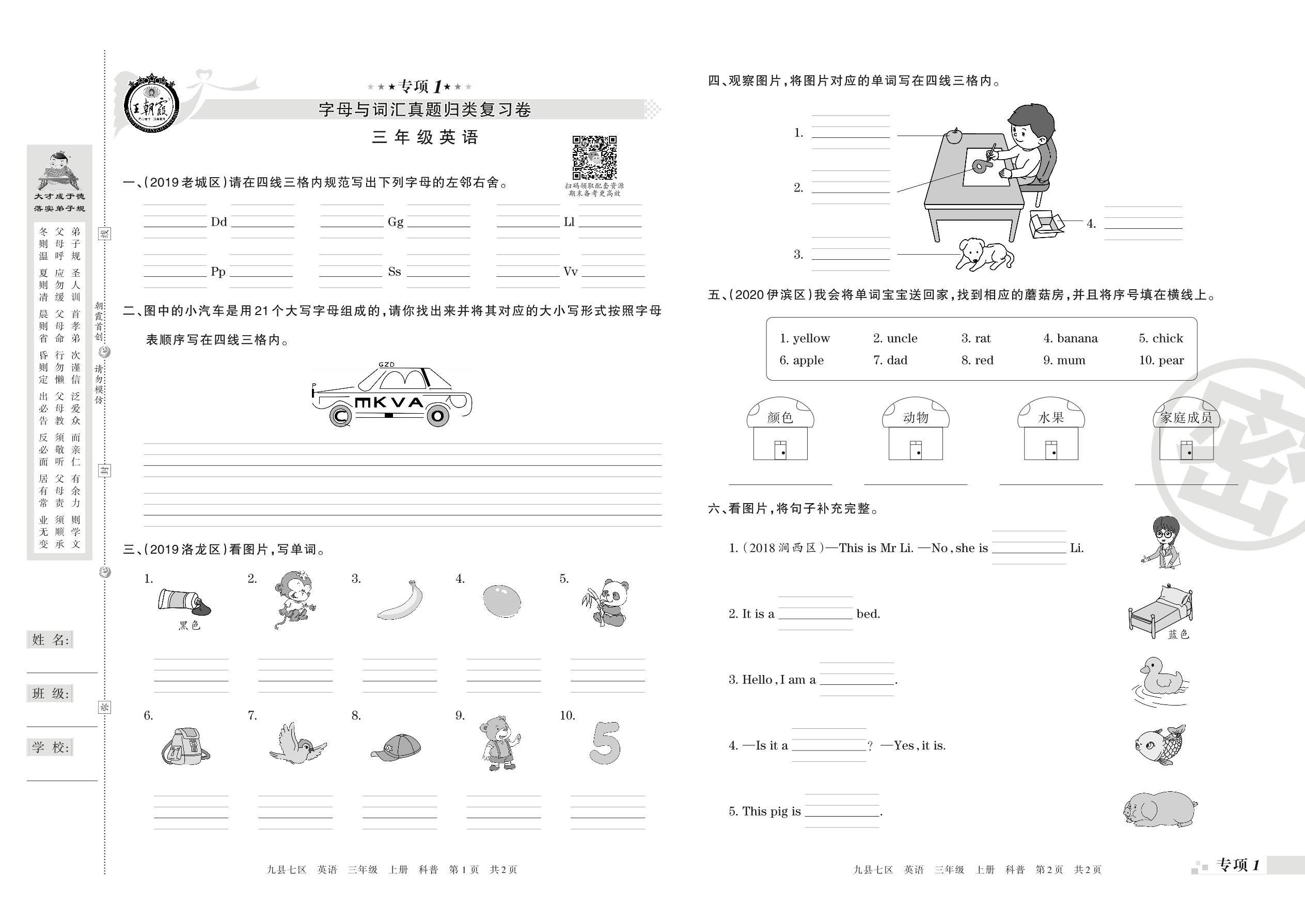 王朝霞期末专项卷——字母与词汇、句子真题归类复习三年级上册英语(科普版)【0】