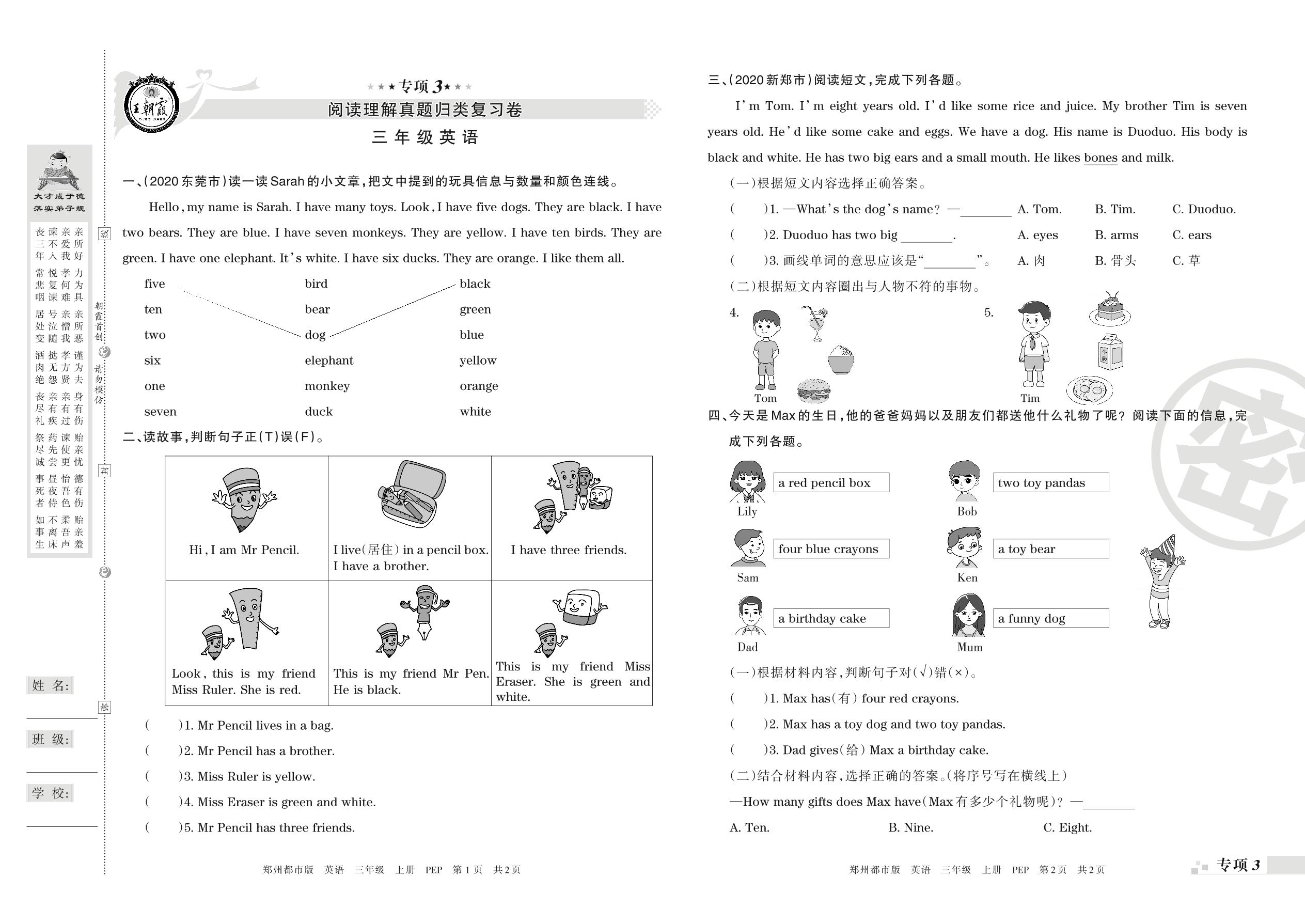 王朝霞期末专项卷——阅读理解真题归类复习、绘本阅读三年级上册英语(PEP版)_R210806184903【0】
