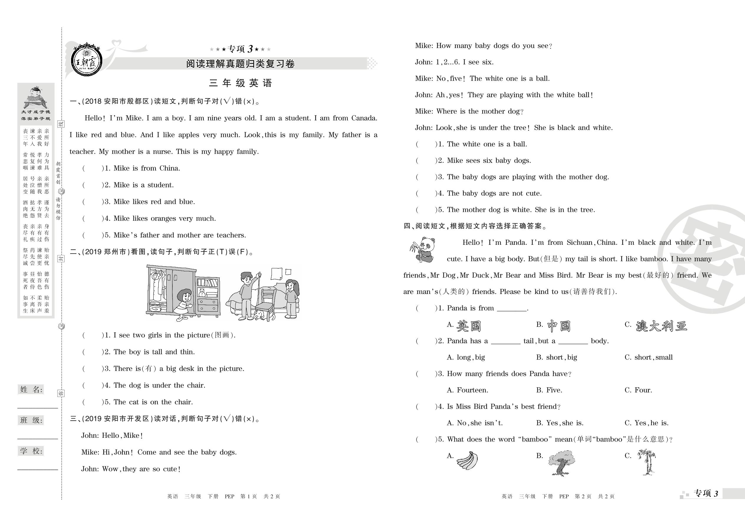 王朝霞期末专项卷——阅读理解真题归类复习卷、新颖题速递:绘本阅读三年级下册英语(PEP版)_R210806185119【0】