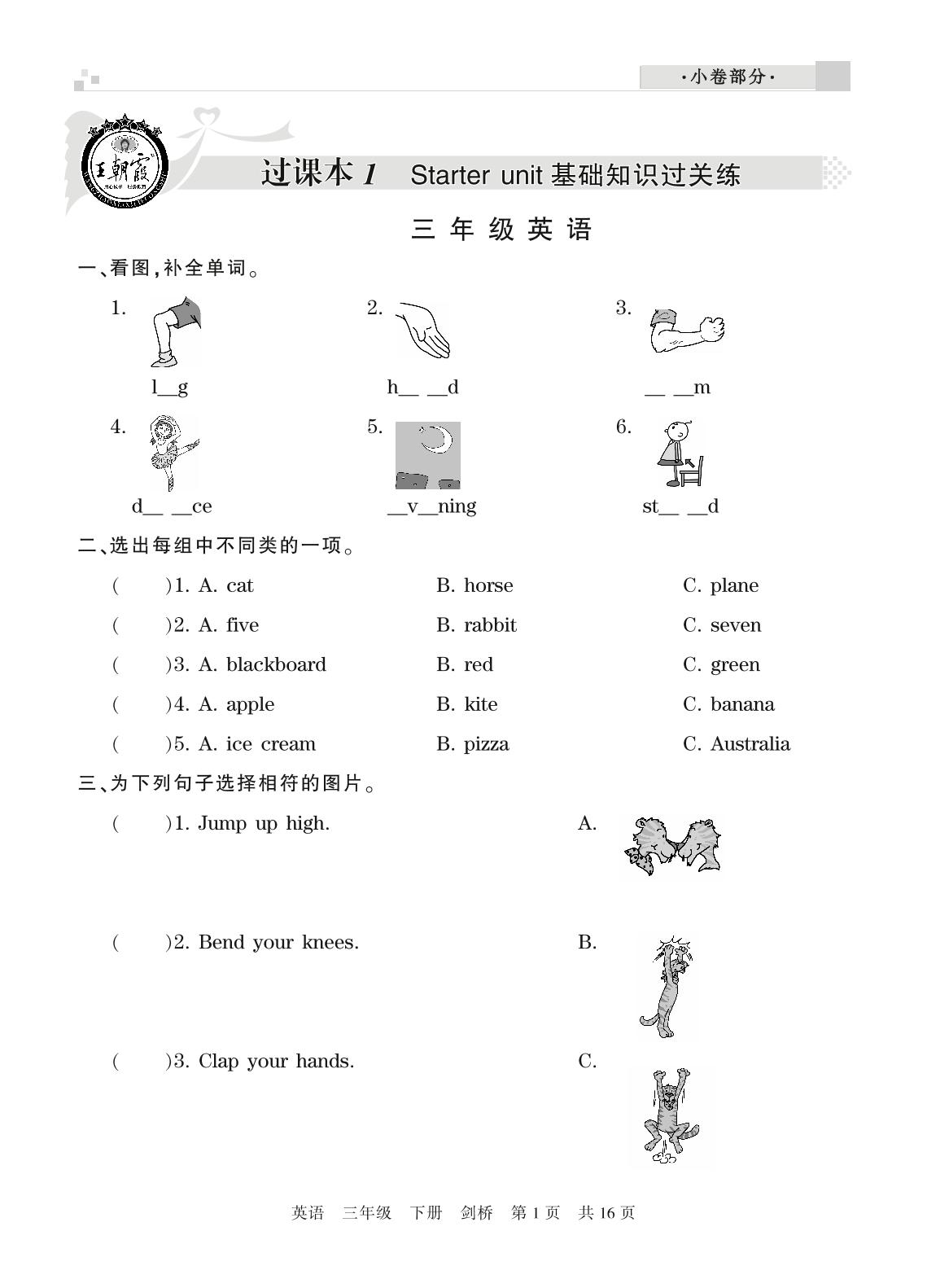 王朝霞期末过课本——基础知识过关练三年级下册英语(剑桥版)【0】
