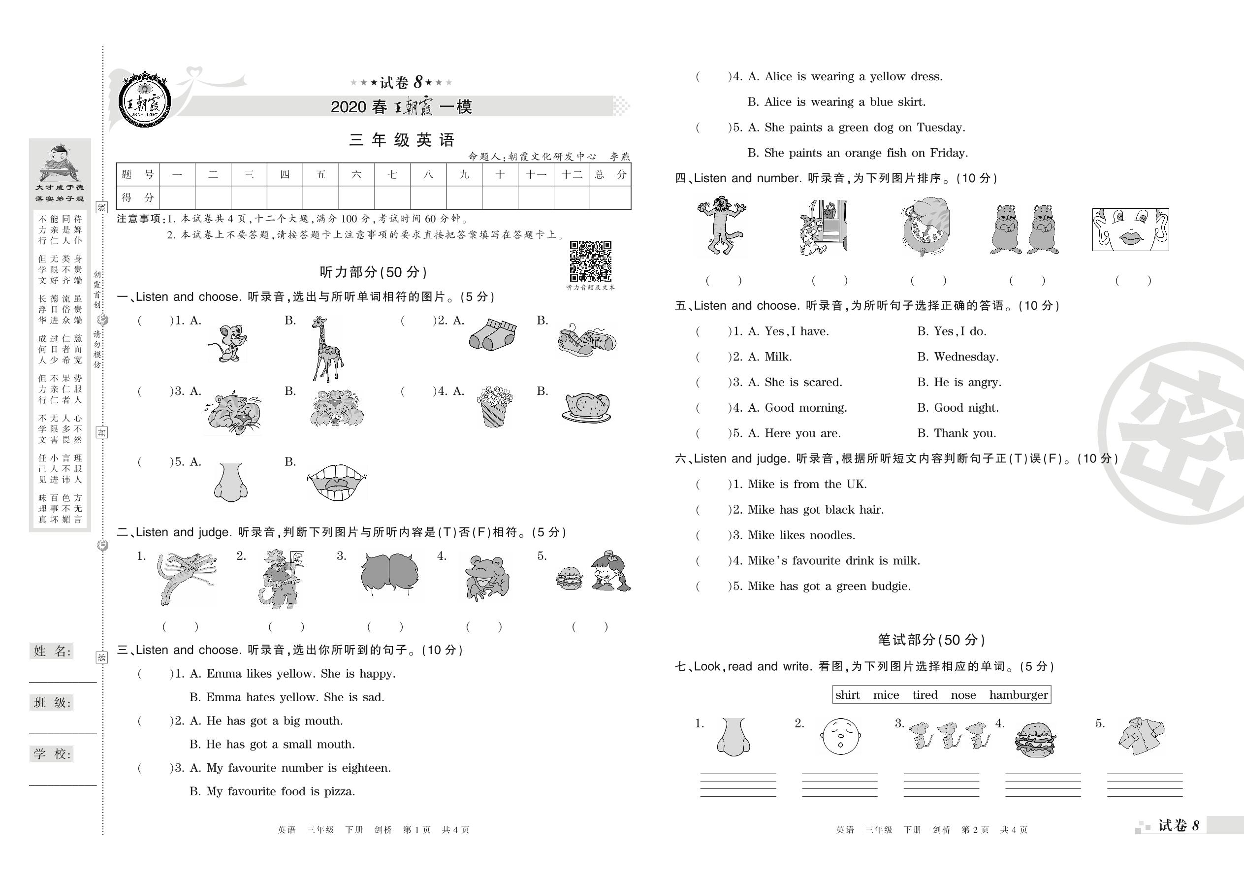王朝霞期末模拟卷三年级下册英语(剑桥版)_R210806185410【8】