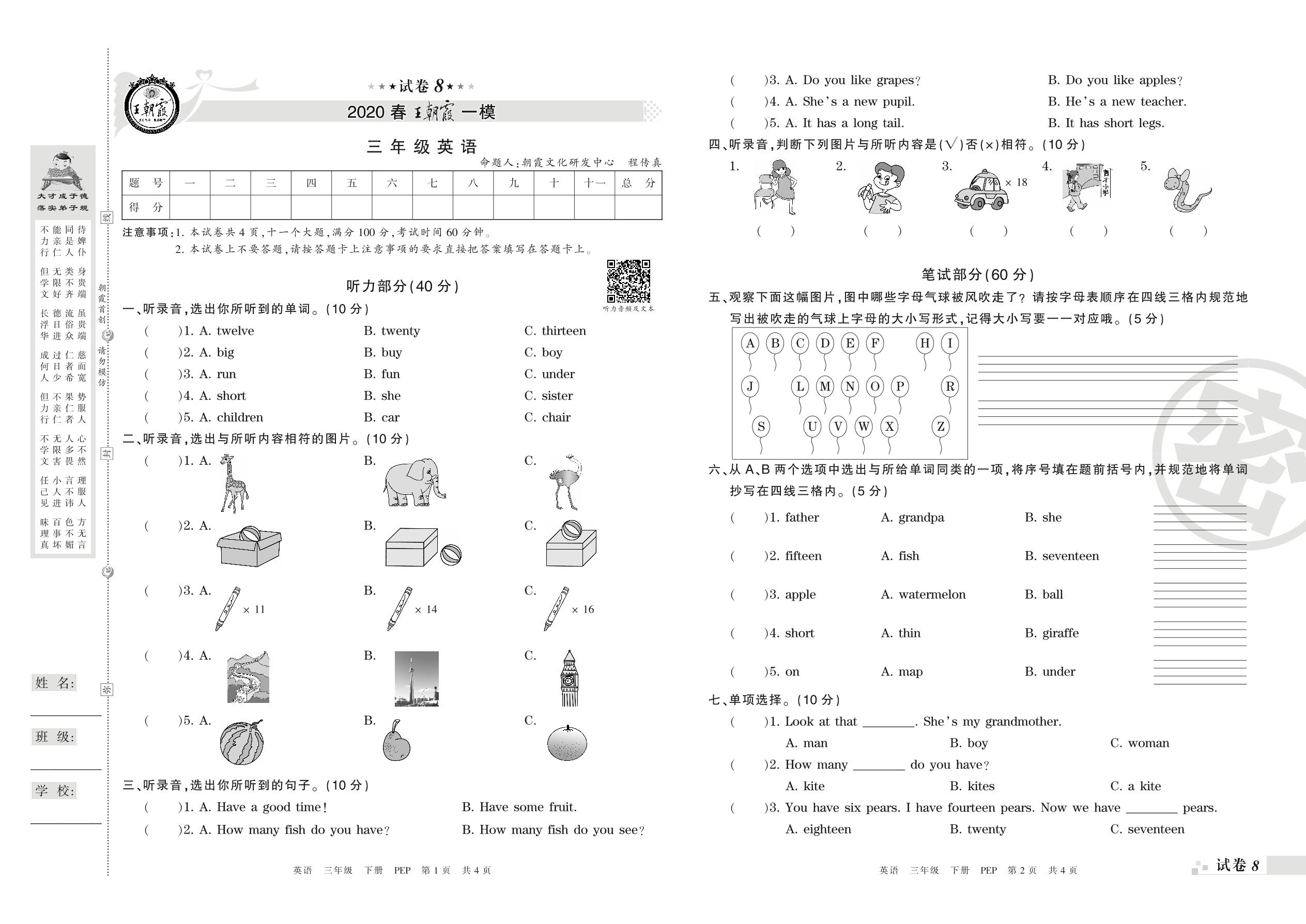 王朝霞期末模拟卷三年级下册英语(PEP版)_R210806185457【8】