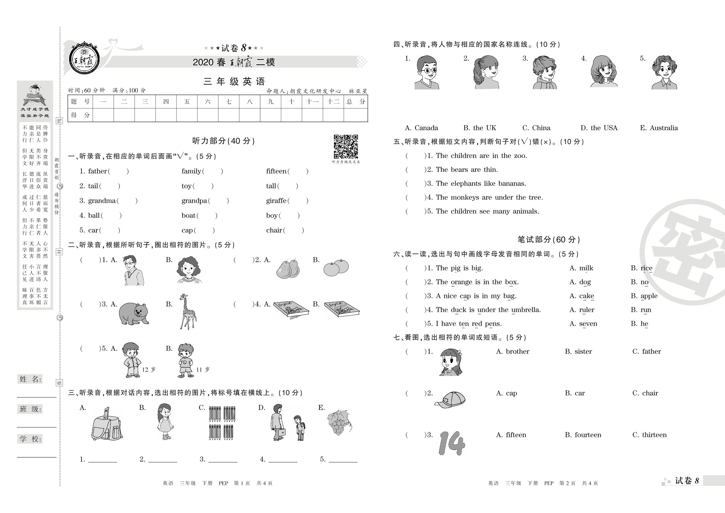 王朝霞期末模拟卷三年级下册英语(PEP版)_R210806185548【8】