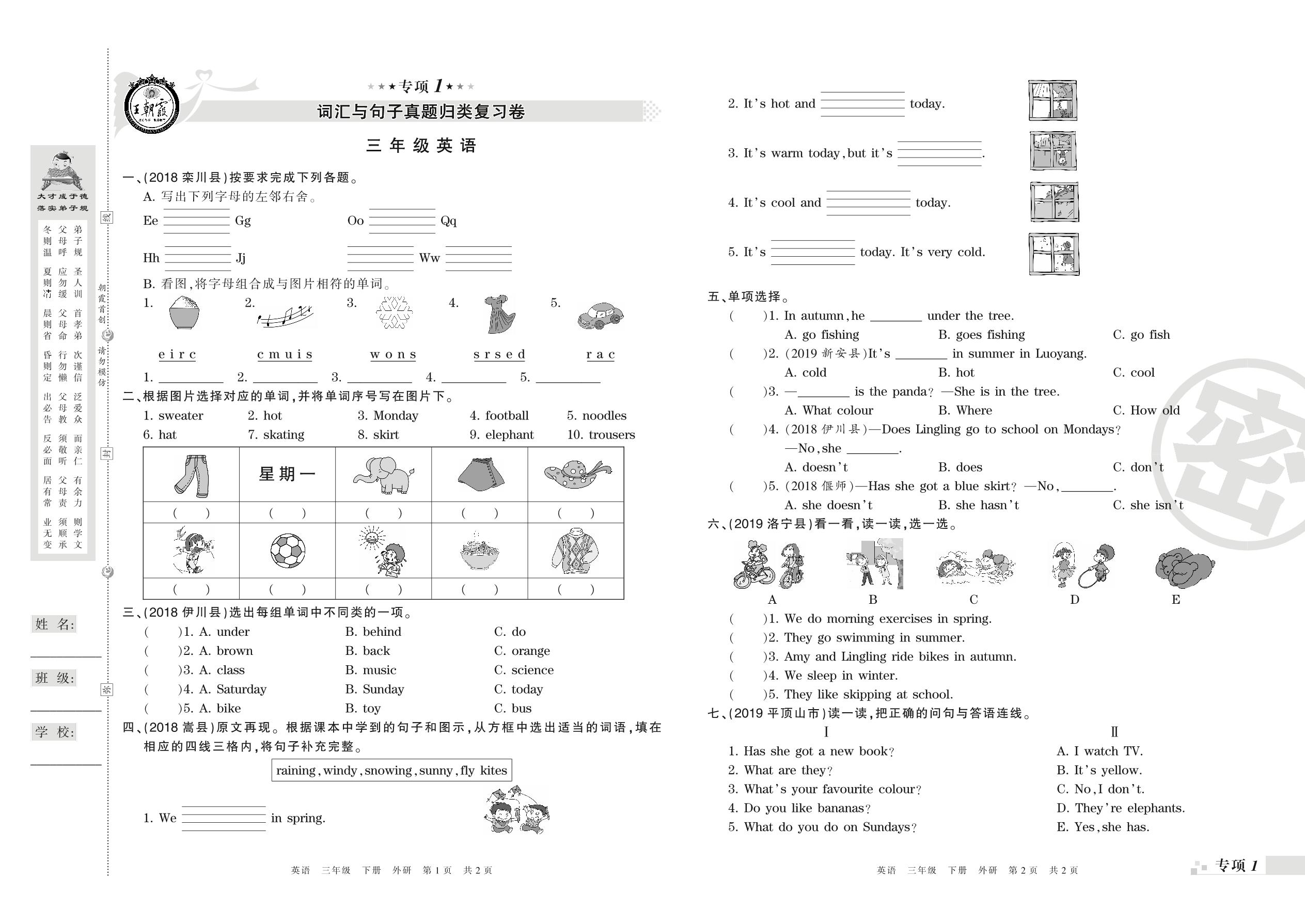 王朝霞期末专项卷——词汇与句子、情景交际真题归类复习卷三年级下册英语(外研版)_R210806185609【0】