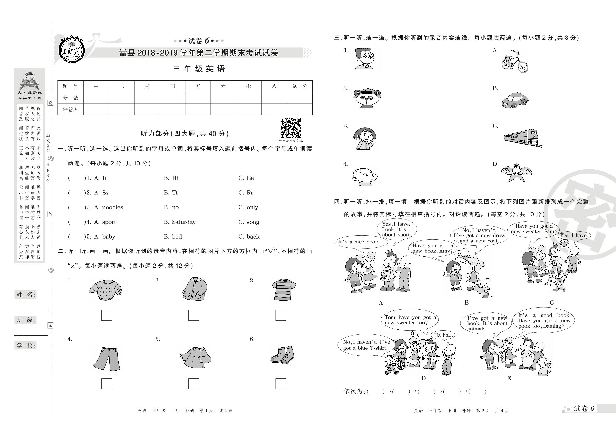 2018-2019学年第二学期洛阳市嵩县三年级英语试卷(外研版)【6】