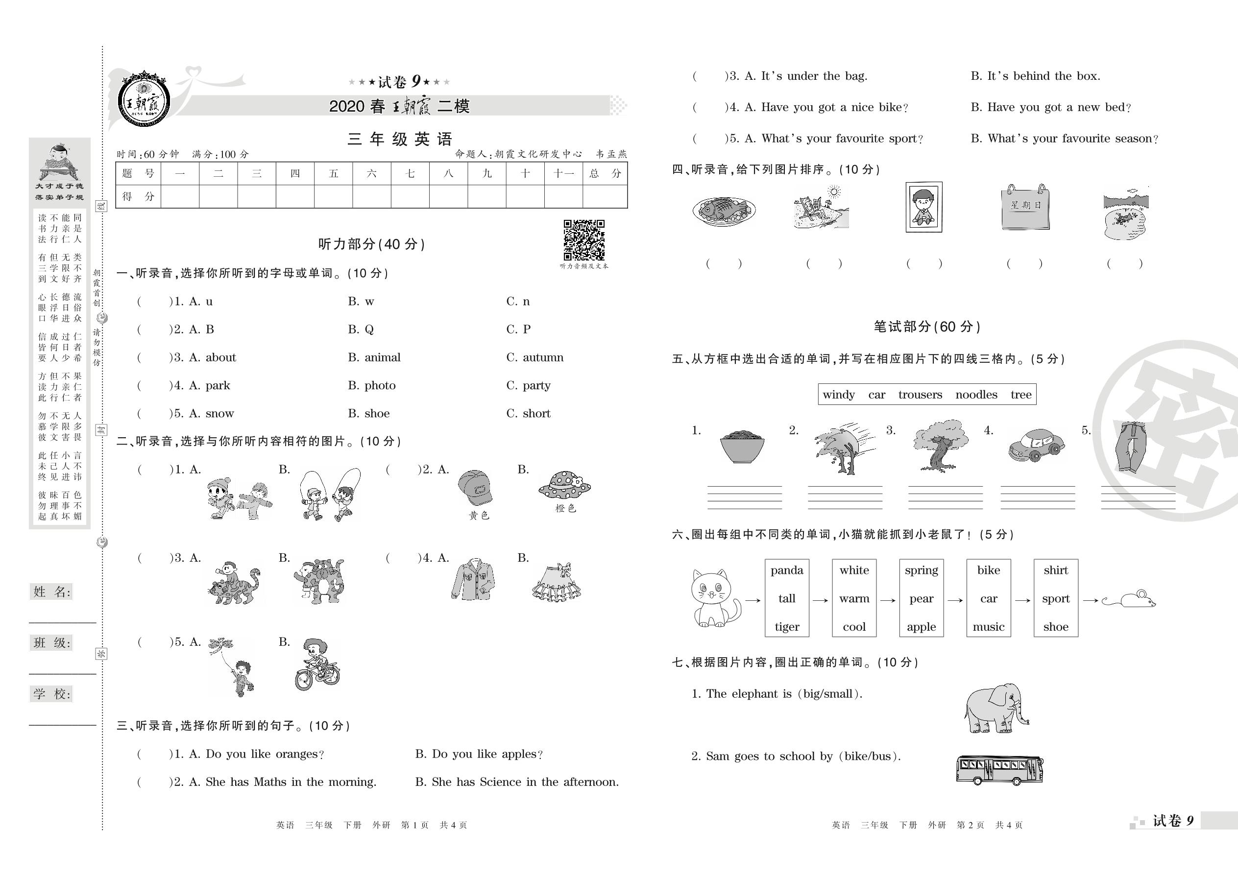 王朝霞期末模拟卷三年级下册英语(外研版)_R210806185703【9】