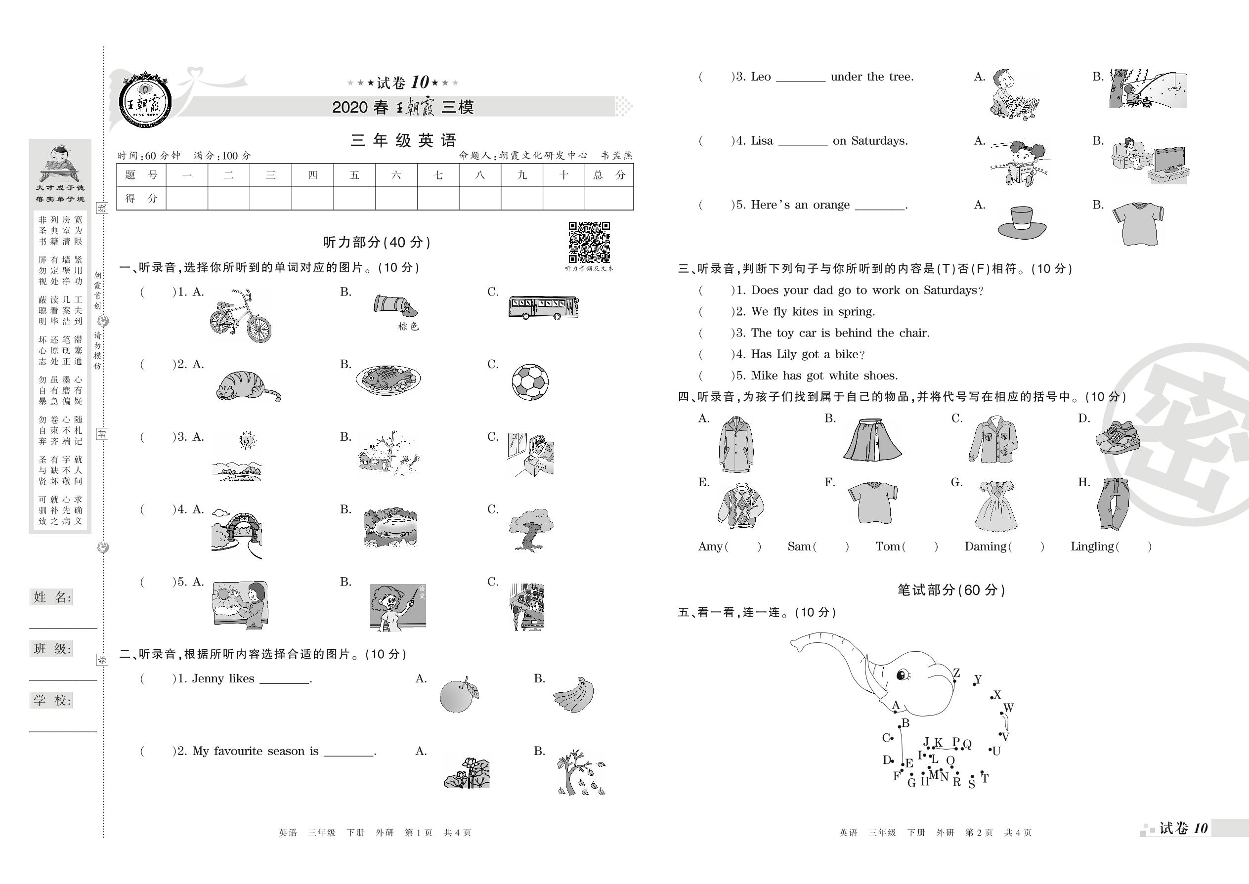 王朝霞期末模拟卷三年级下册英语(外研版)_R210806185711【10】