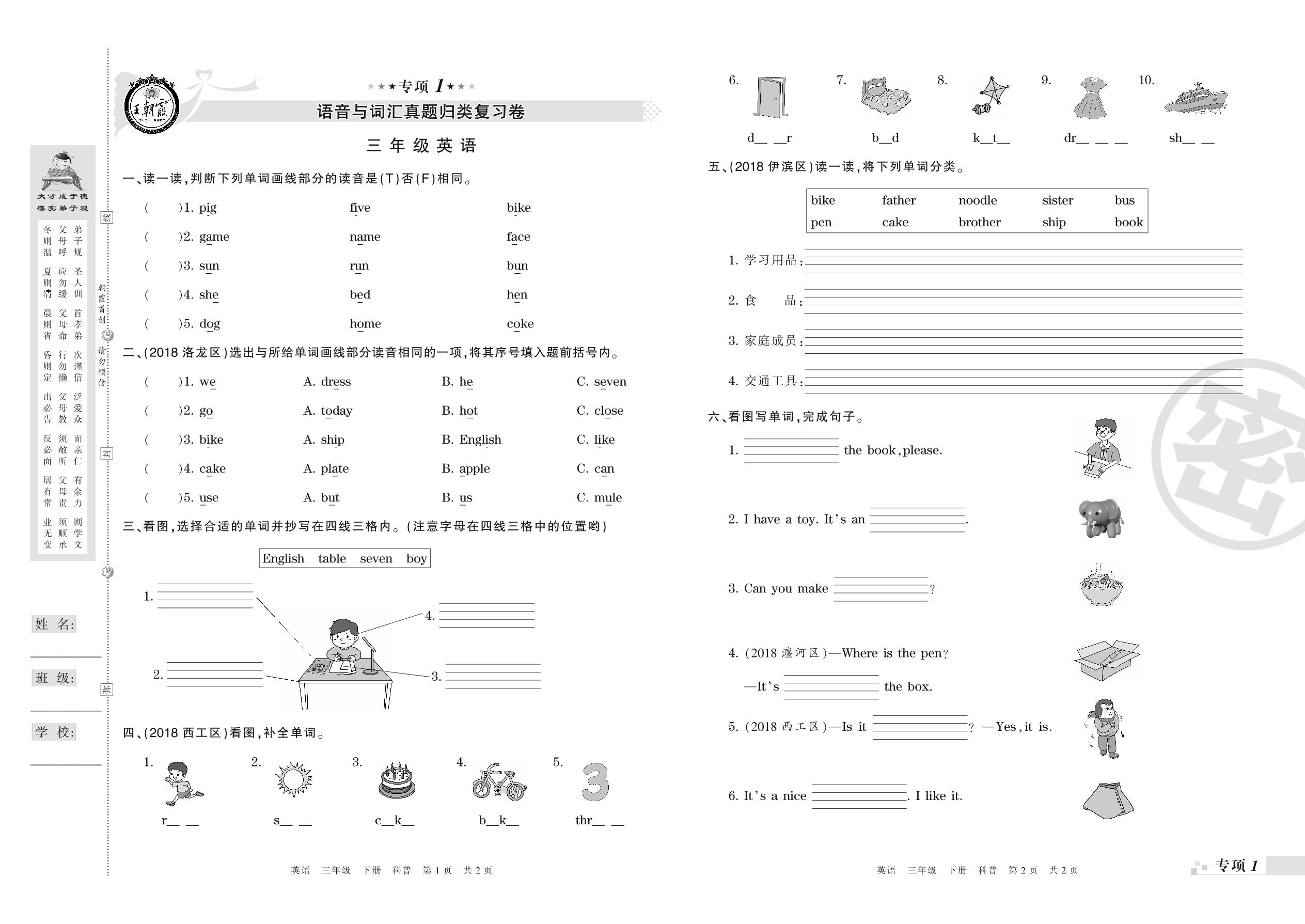 王朝霞期末专项卷——词汇与句子、情景交际真题归类复习卷三年级下册英语(科普版)_R210806185719【0】