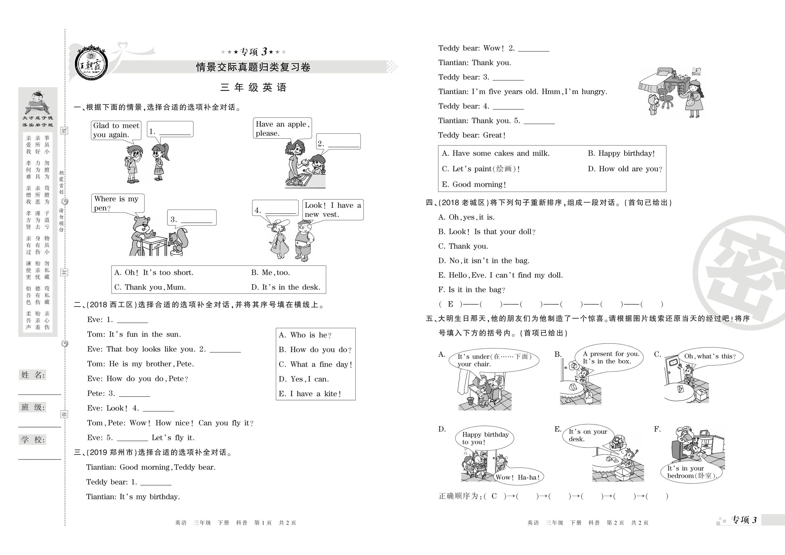 王朝霞期末专项卷——阅读理解真题归类复习卷、新颖题速递:绘本阅读三年级下册英语(科普版)_R210806185724【0】