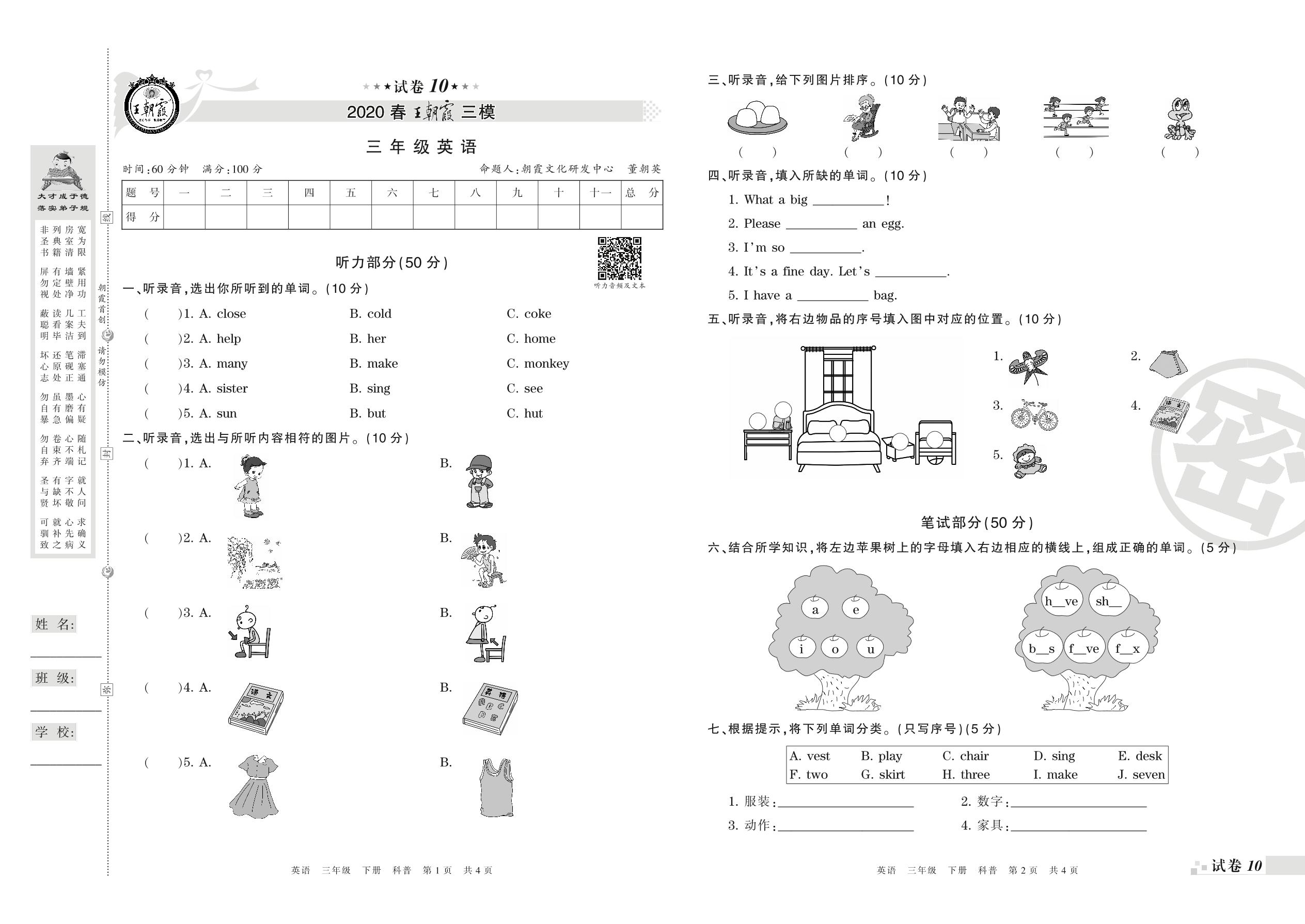 王朝霞期末模拟卷三年级下册英语(科普版)_R210806185819【10】