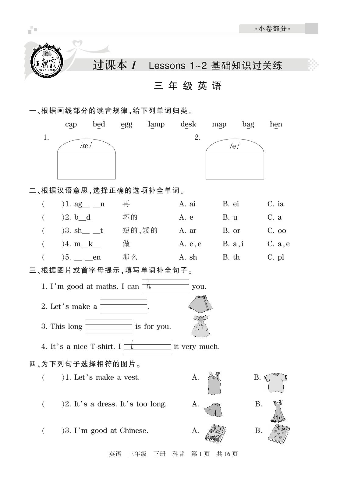 王朝霞期末过课本——基础知识过关练三年级下册英语(科普版)_R210806185827【0】