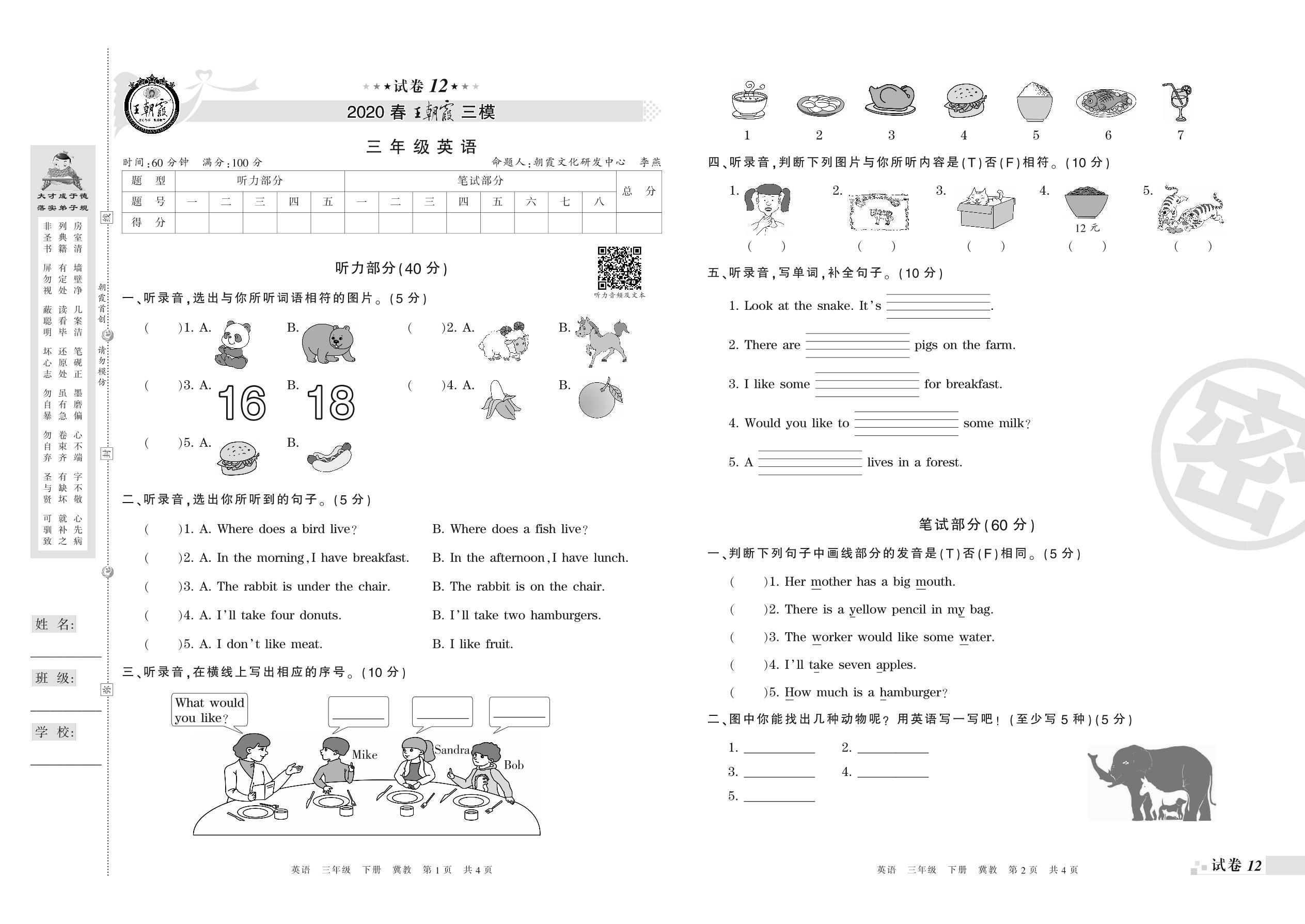 王朝霞期末模拟卷三年级下册英语(冀教版)_R210806185930【12】