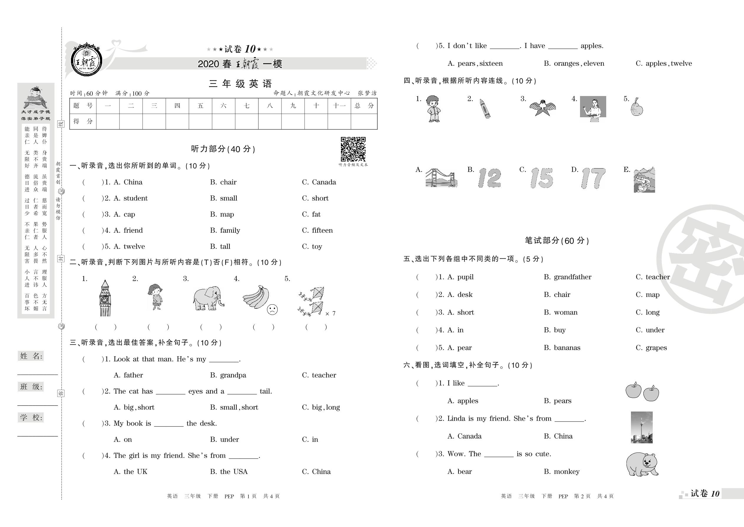 王朝霞期末模拟卷三年级下册英语(PEP版)_R210806190342【10】