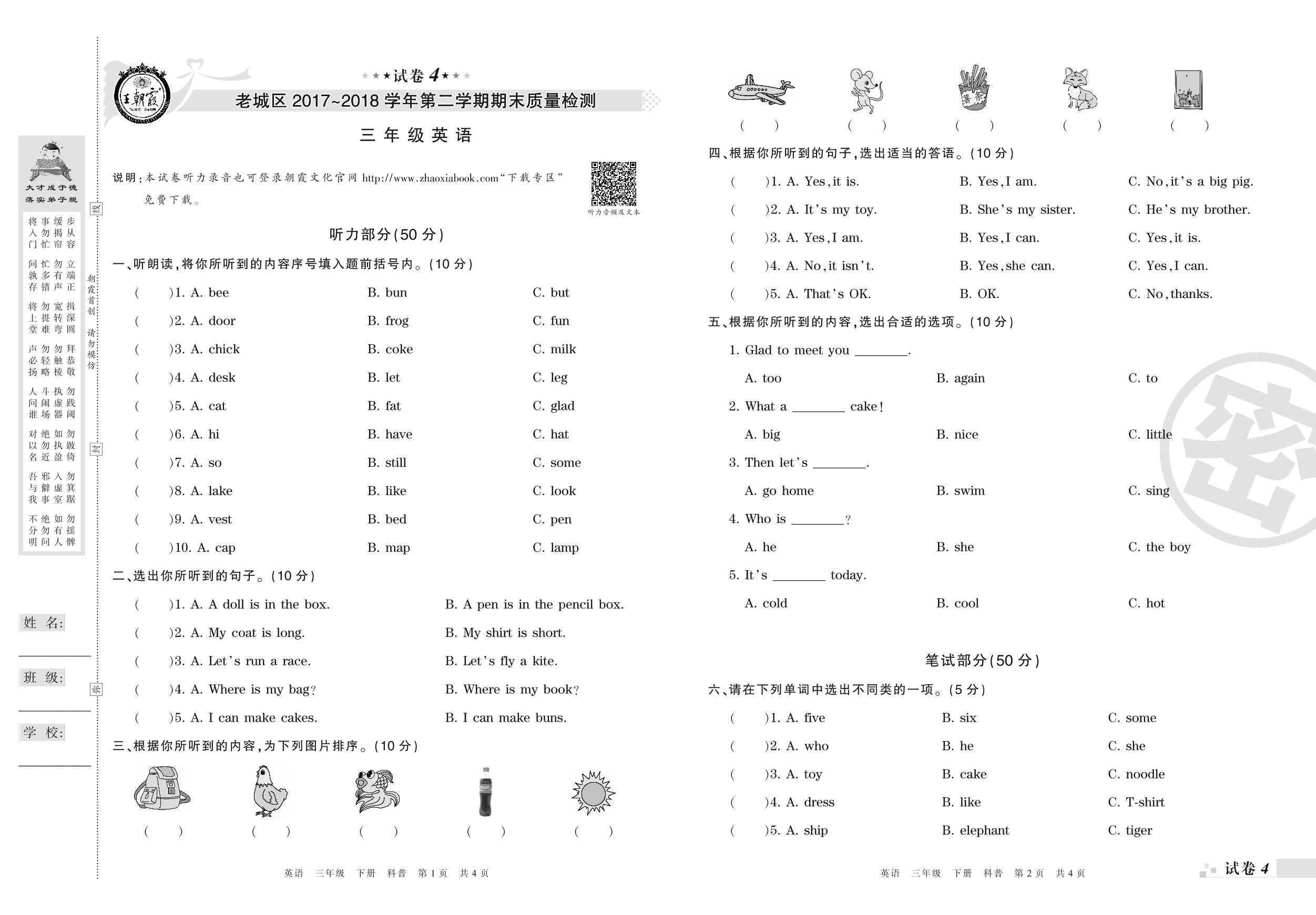 2017-2018学年第二学期洛阳市老城区三年级英语试卷(科普版)_R210806190506【4】