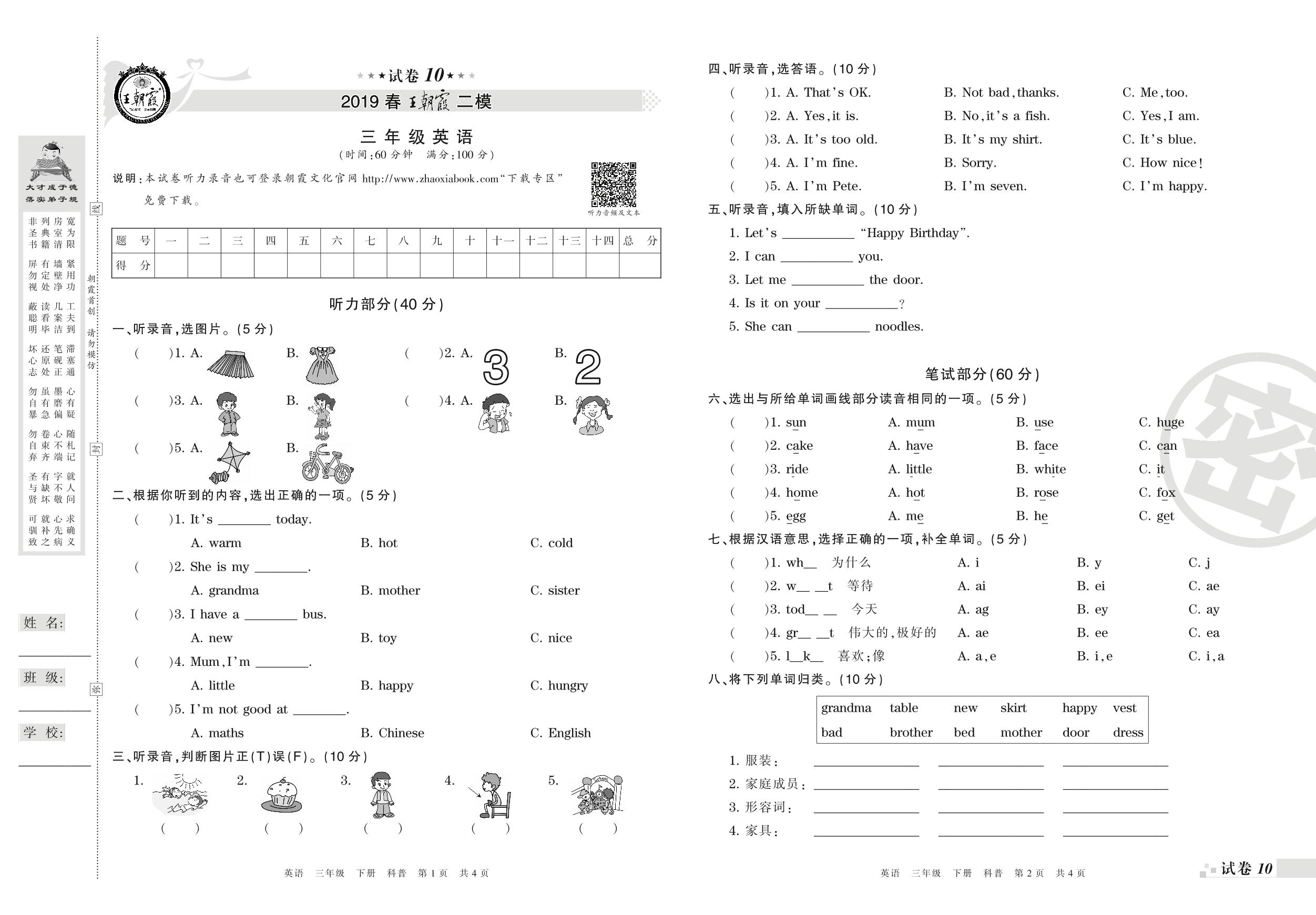 王朝霞期末模拟卷三年级下册英语(科普版)_R210806190526【10】