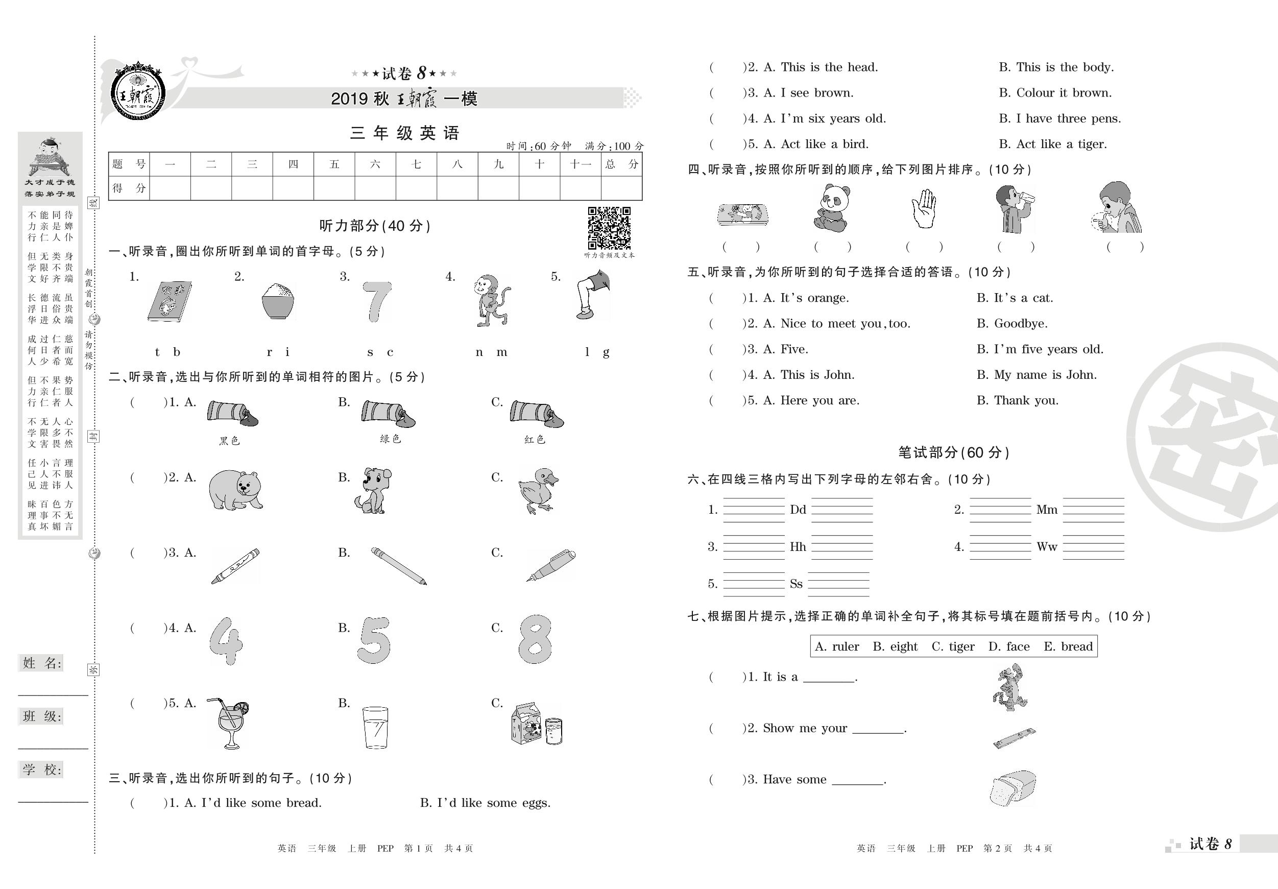 王朝霞期末模拟卷三年级上册英语(PEP版)_R210806190604【8】