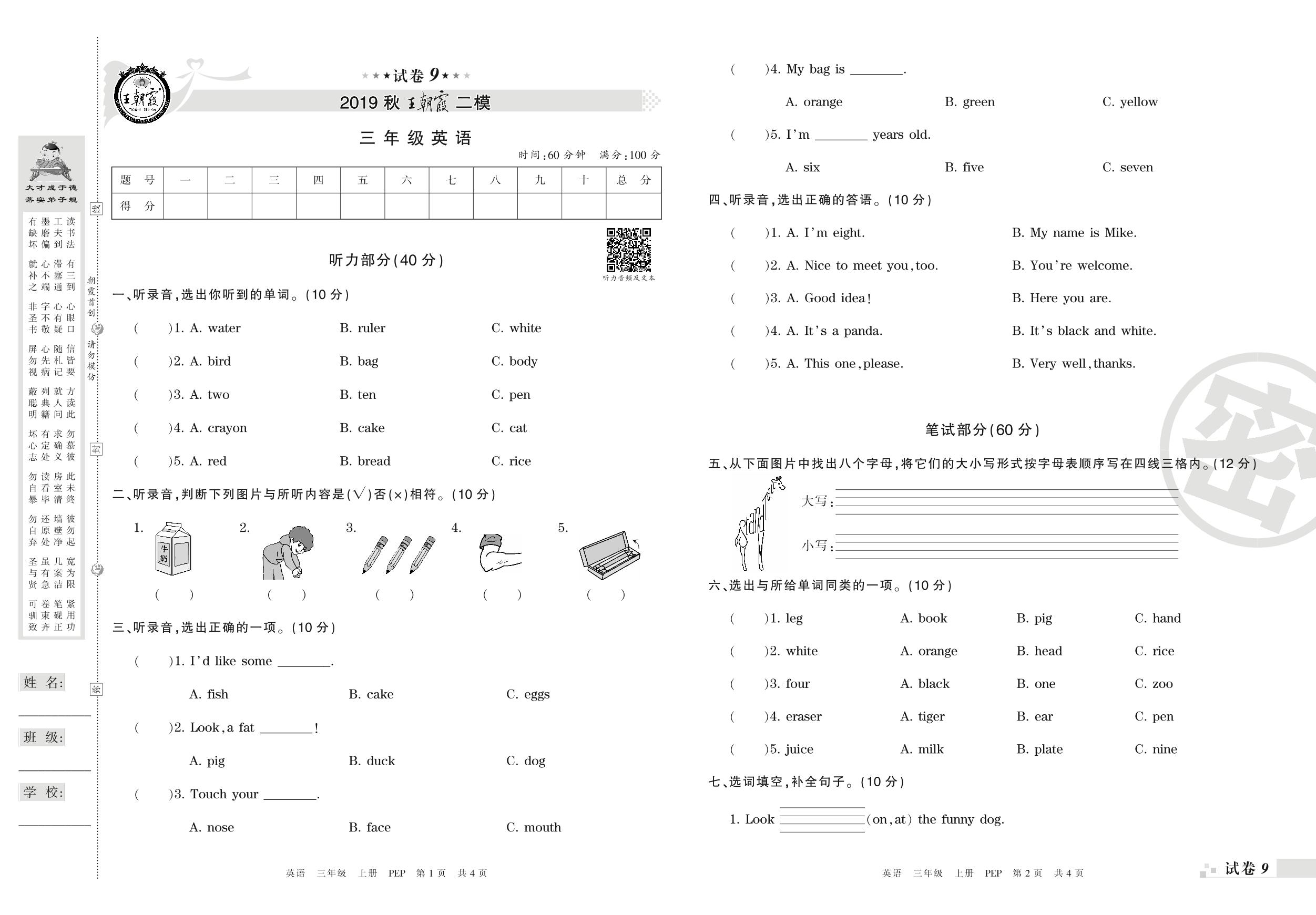 王朝霞期末模拟卷三年级上册英语(PEP版)_R210806190645【9】