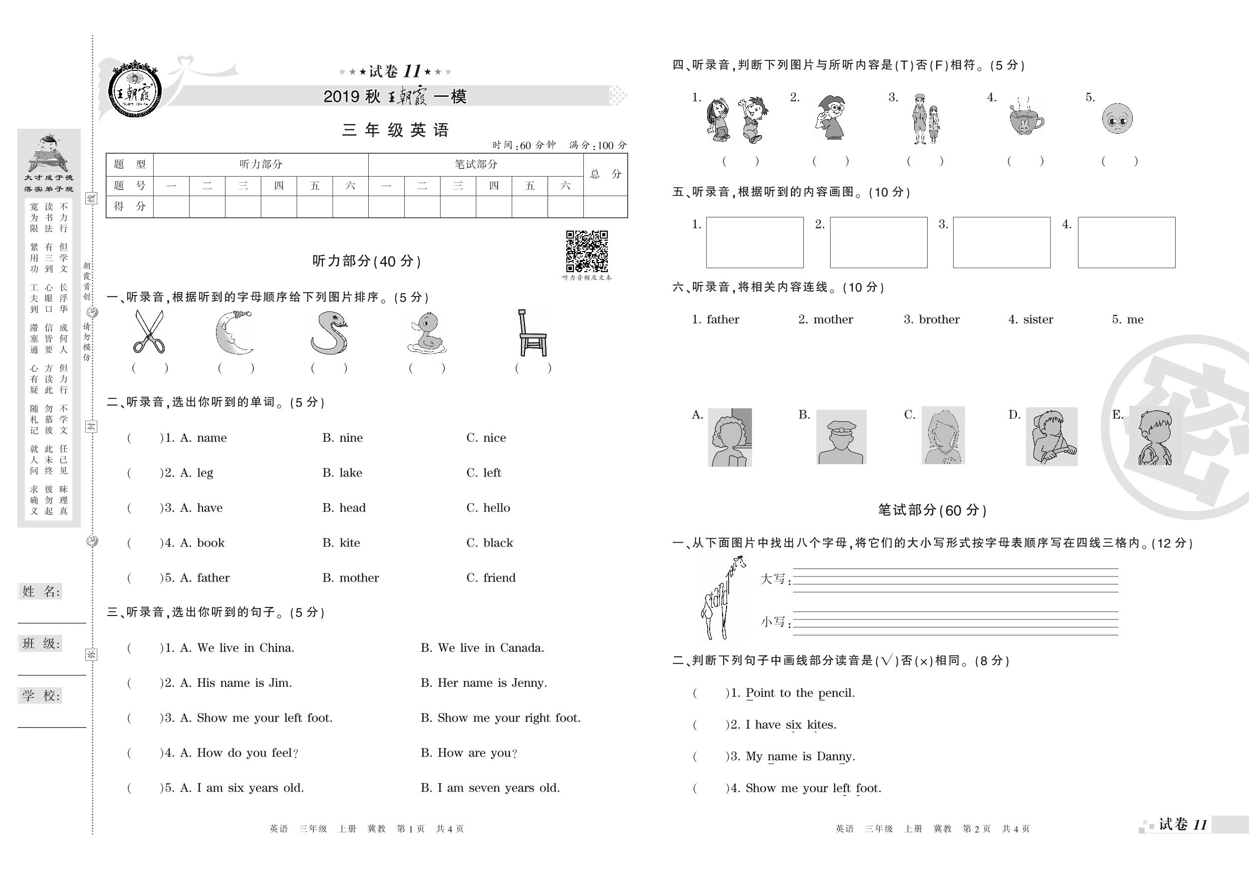 王朝霞期末模拟卷三年级上册英语(冀教版)_R210806190724【11】