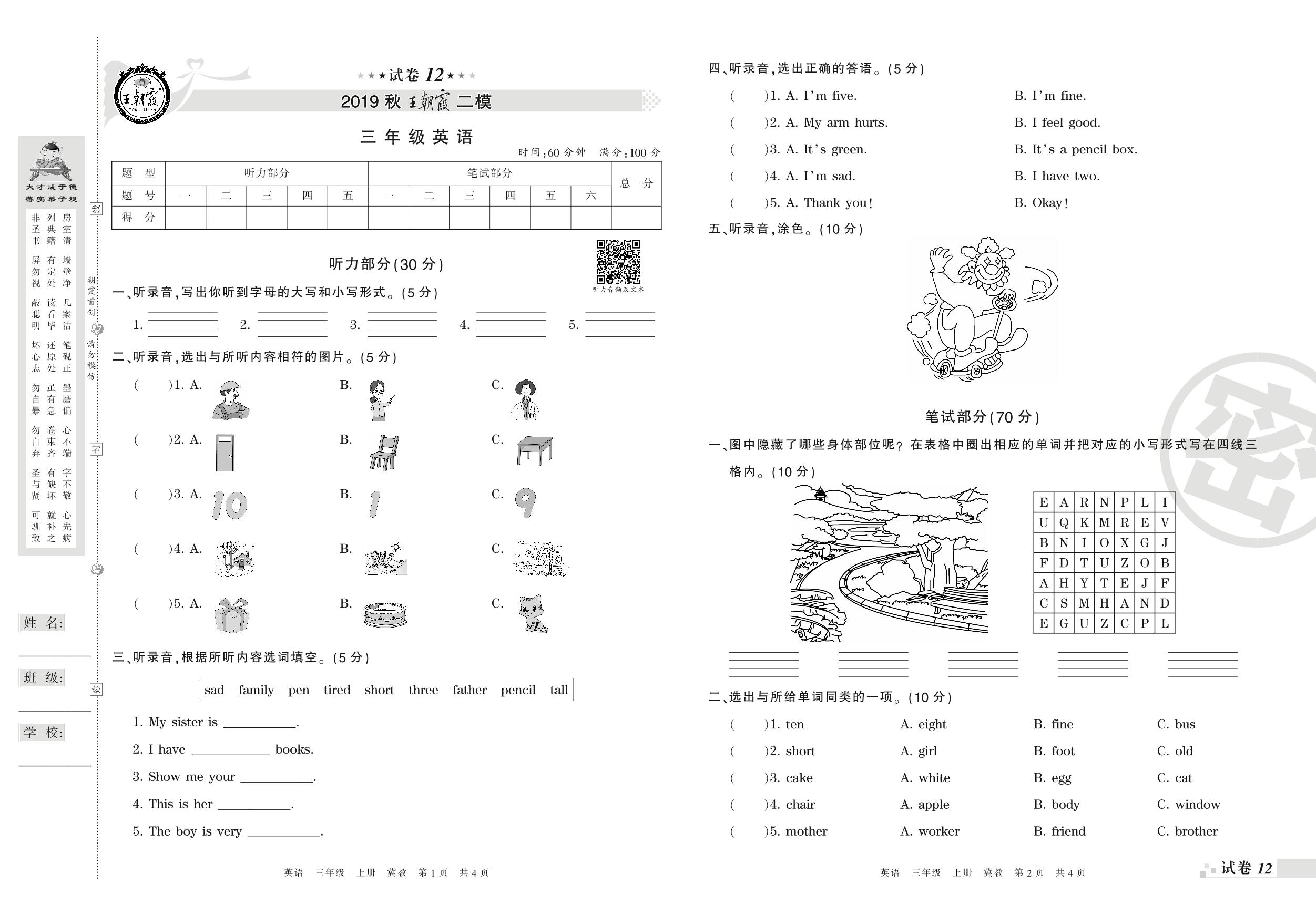 王朝霞期末模拟卷三年级上册英语(冀教版)_R210806190728【12】