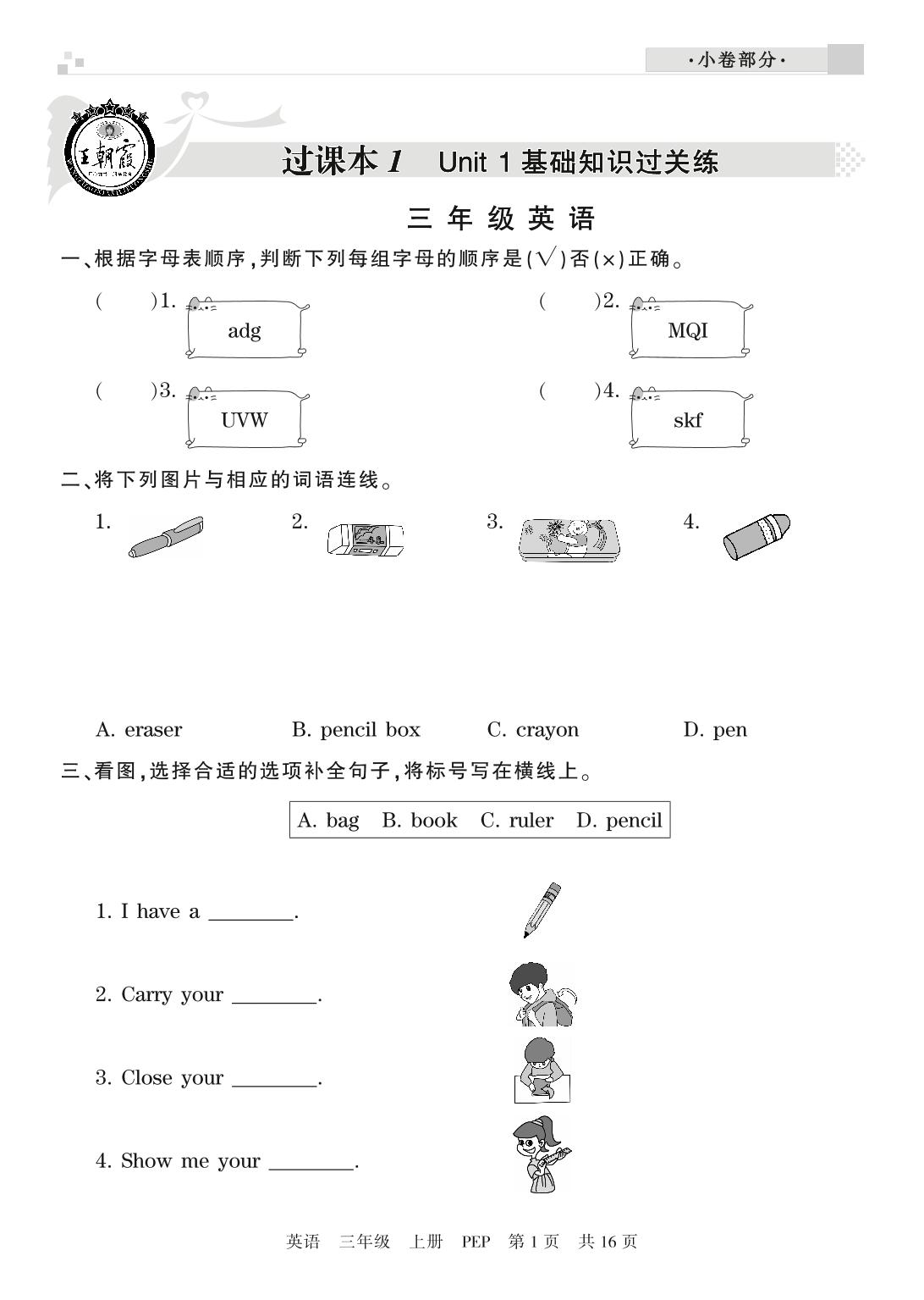 三年级英语人教PEP版(三起始)上册过课本