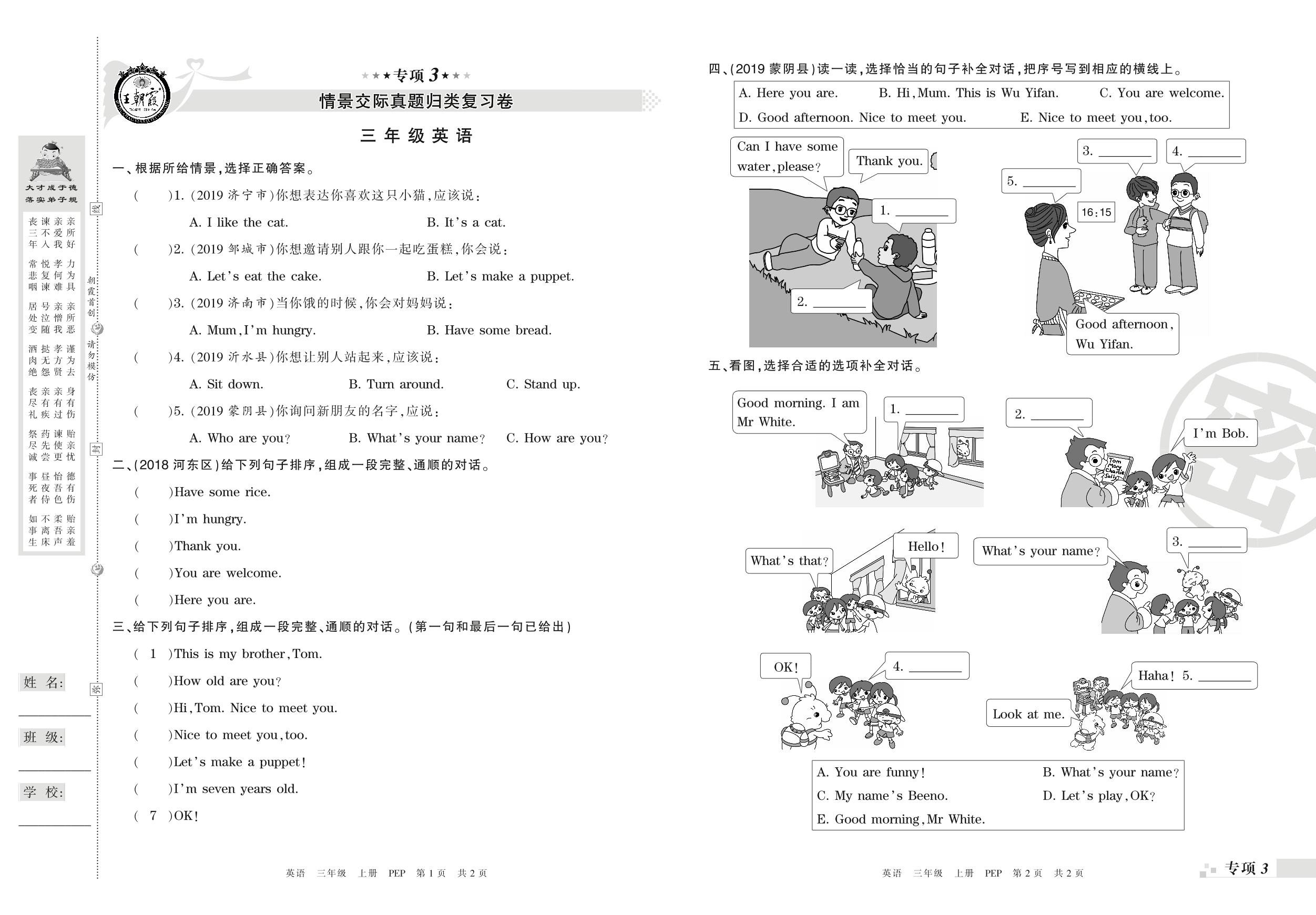 王朝霞期末专项卷——情景交际、阅读理解真题归类复习三年级上册英语(PEP版)_R210806190741【0】