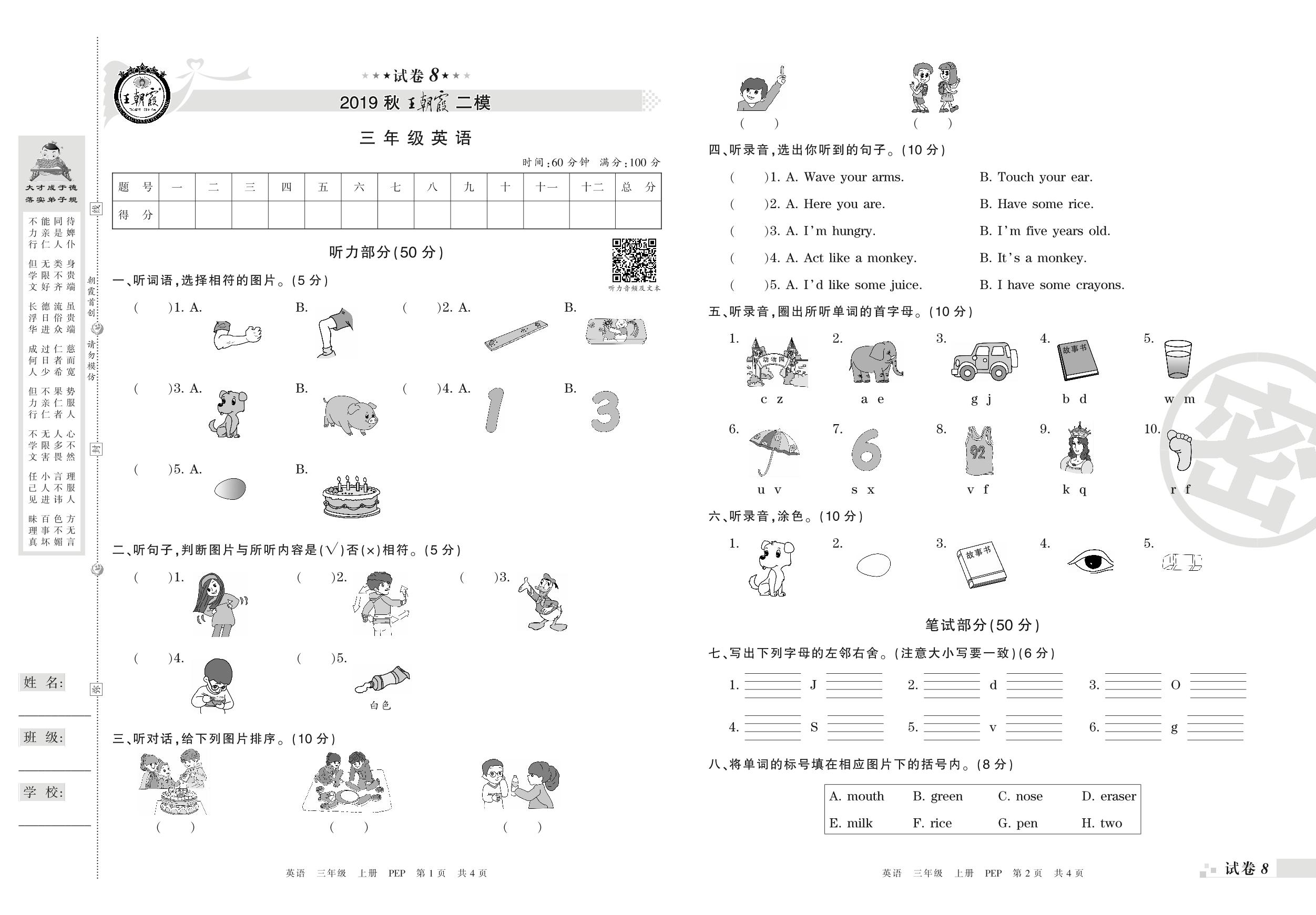 王朝霞期末模拟卷三年级上册英语(PEP版)_R210806190808【8】
