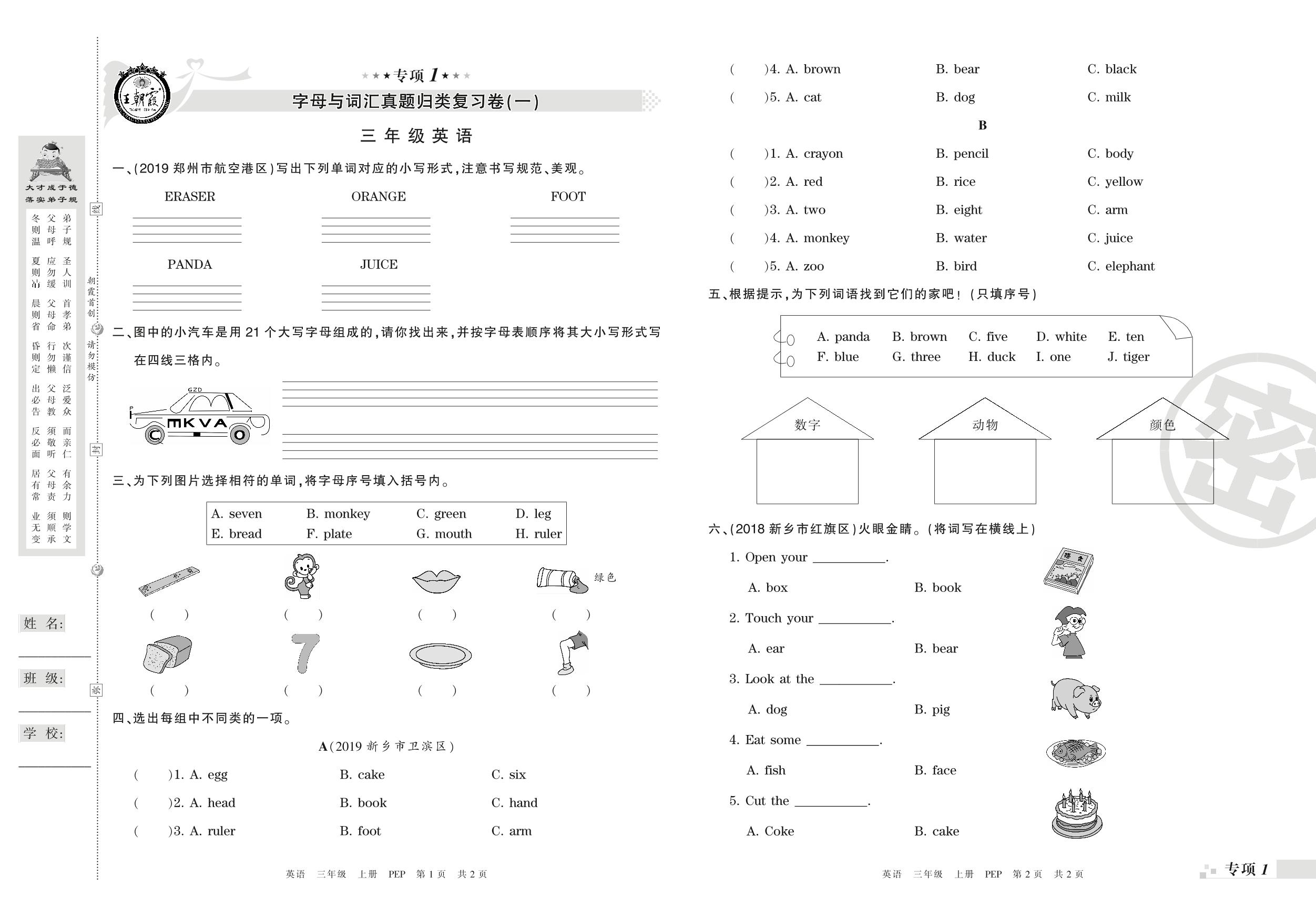 王朝霞期末专项卷——字母与词汇真题归类复习三年级上册英语(PEP版)_R210806190849【0】
