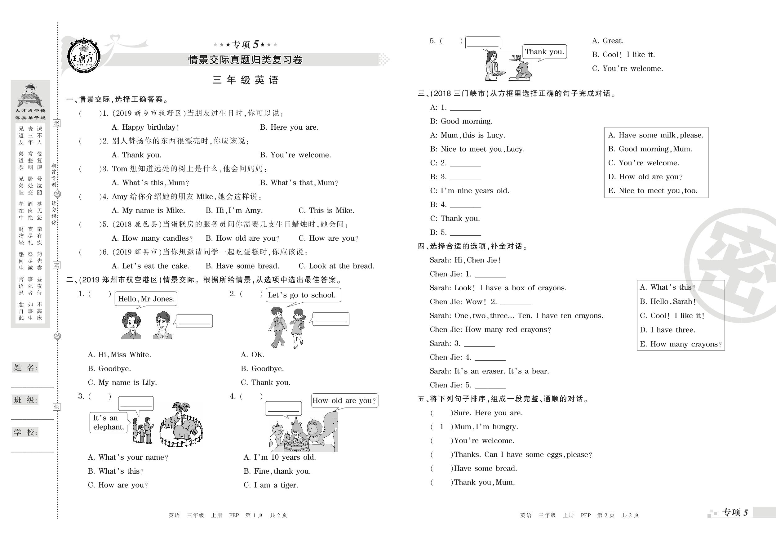 王朝霞期末专项卷——情景交际、阅读理解真题归类复习三年级上册英语(PEP版)_R210806190853【0】