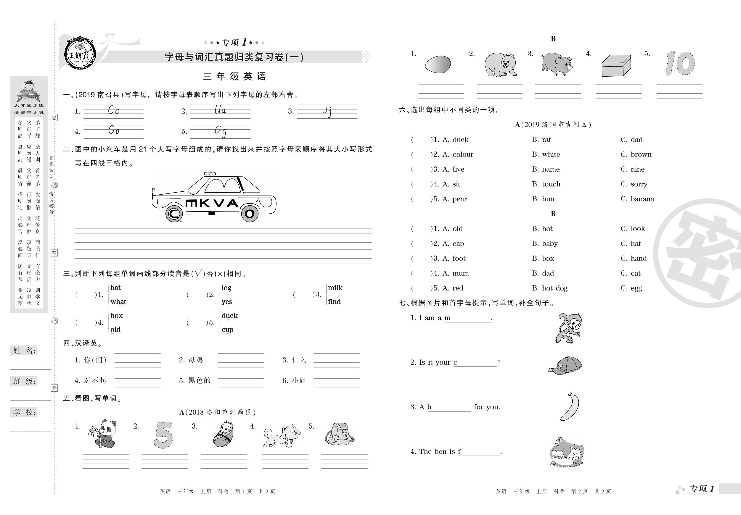 王朝霞期末专项卷——语音与词汇真题归类复习三年级上册英语(科普版)_R210806191101【0】