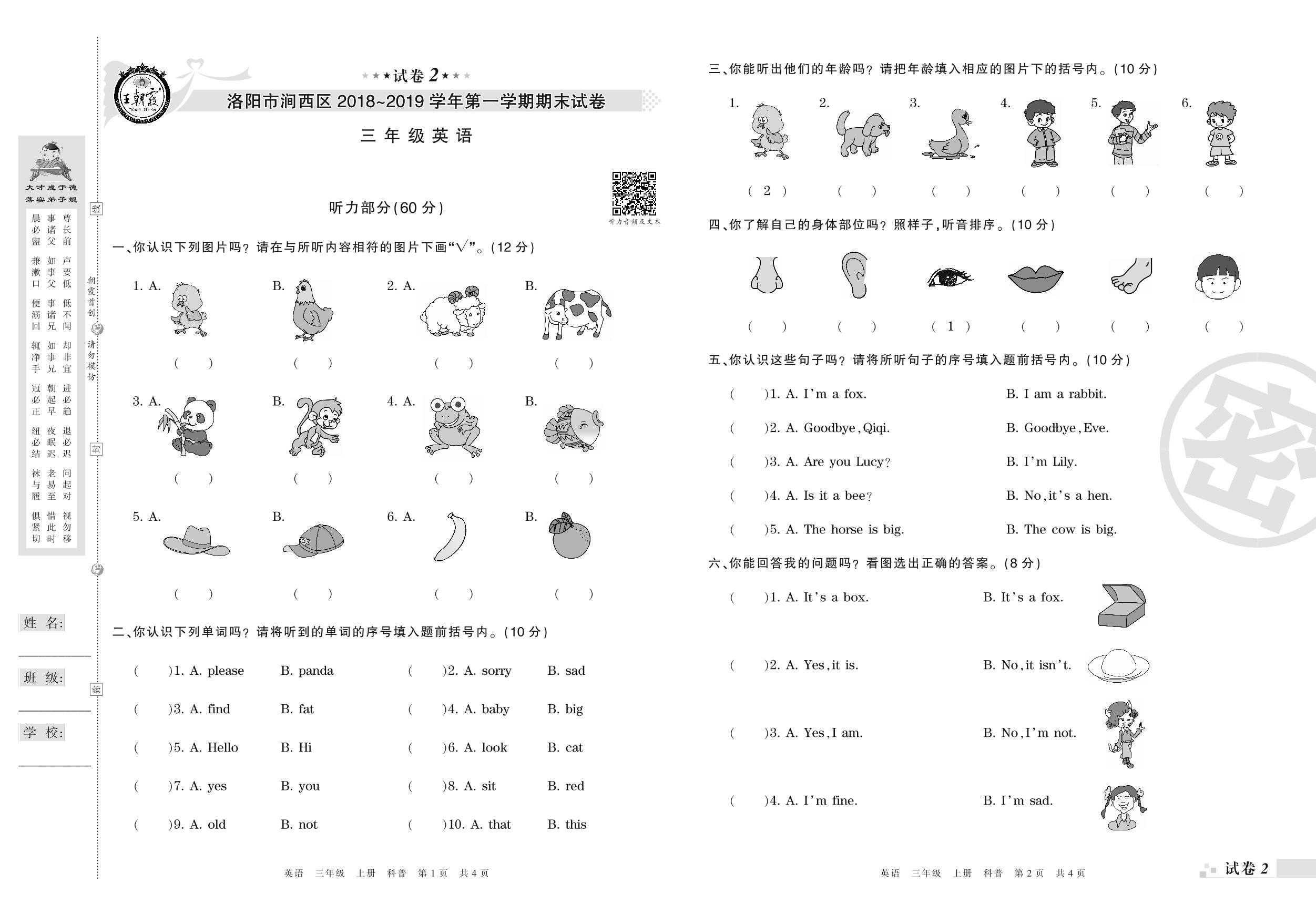 2018-2019学年第一学期洛阳市涧西区三年级英语试卷(科普版)_R210806191111【2】