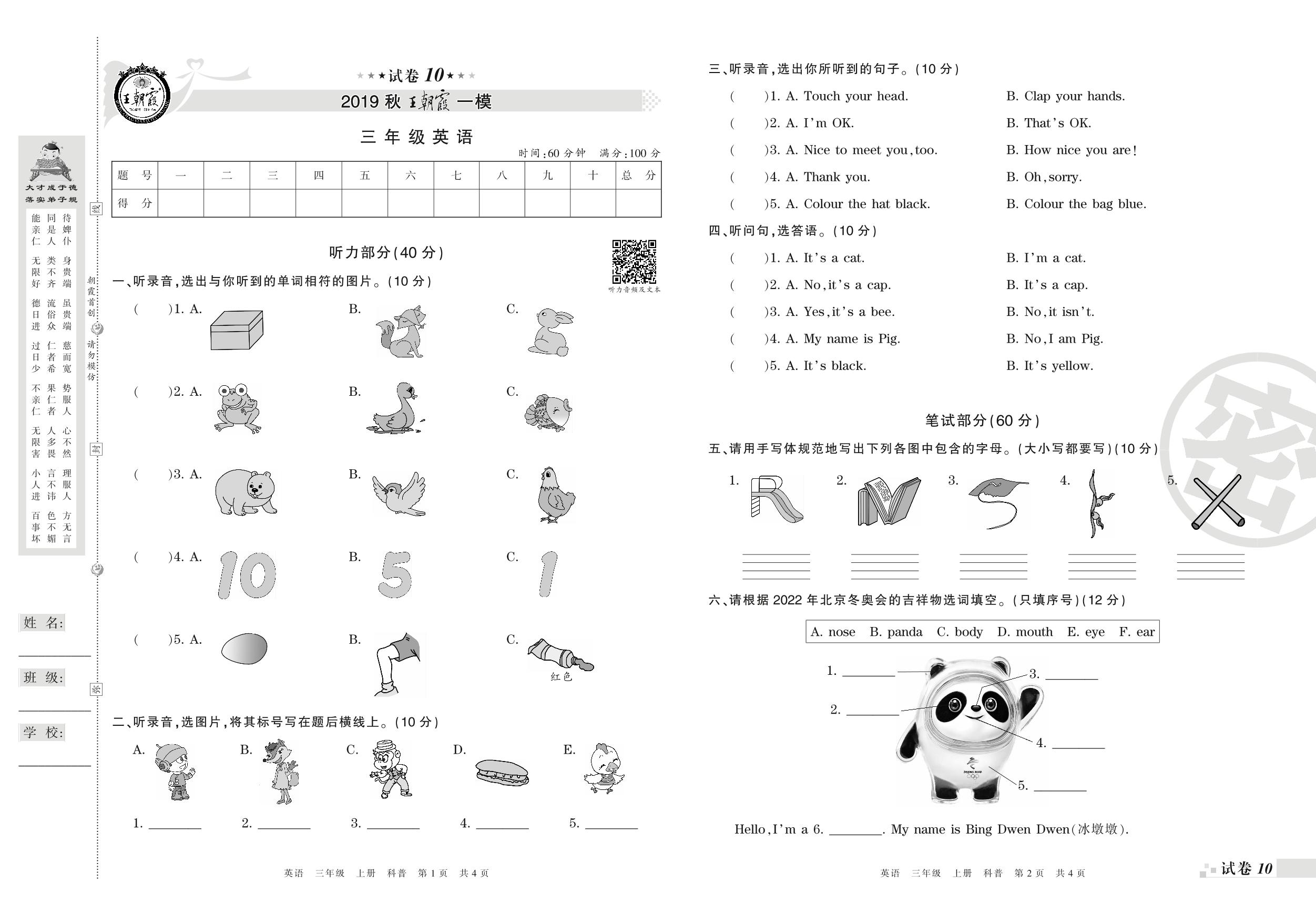 王朝霞期末模拟卷三年级上册英语(科普版)_R210806191138【10】