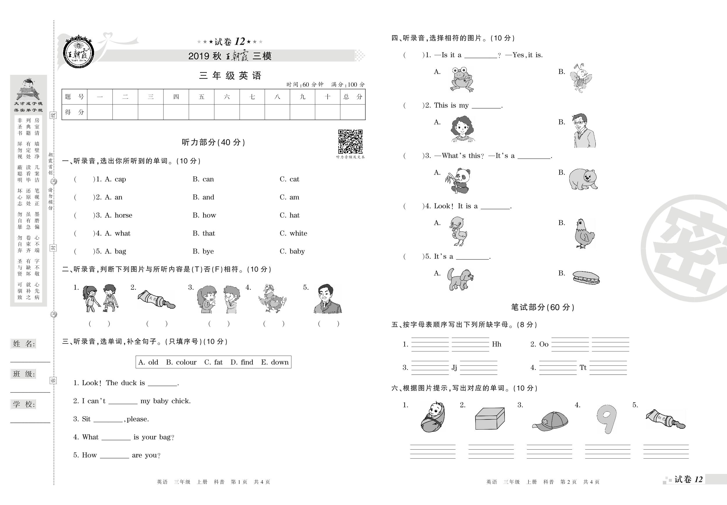 王朝霞期末模拟卷三年级上册英语(科普版)_R210806191149【12】
