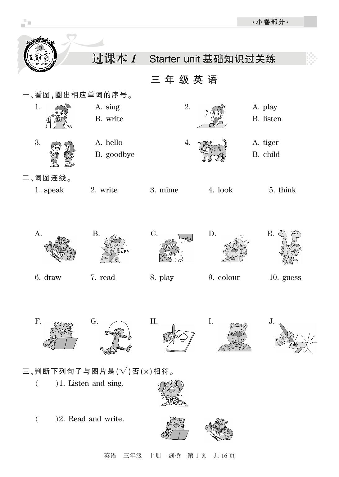 三年级英语剑桥版上册过课本