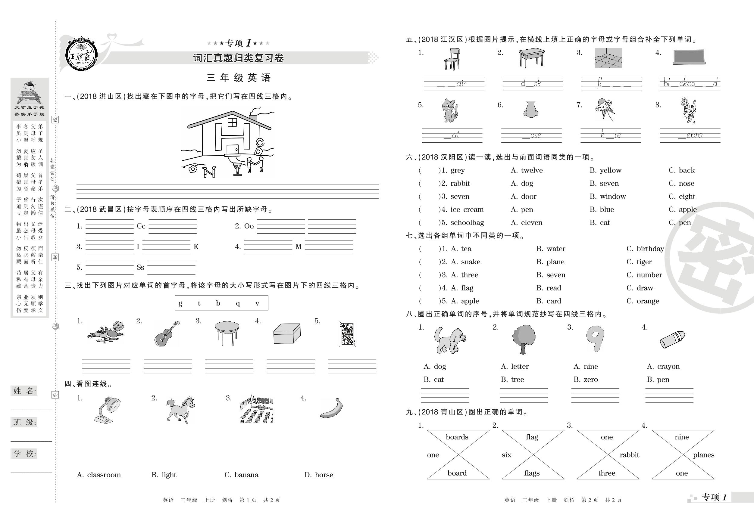 王朝霞期末专项卷——词汇、句子真题归类复习三年级上册英语(剑桥版)_R210806191200【0】