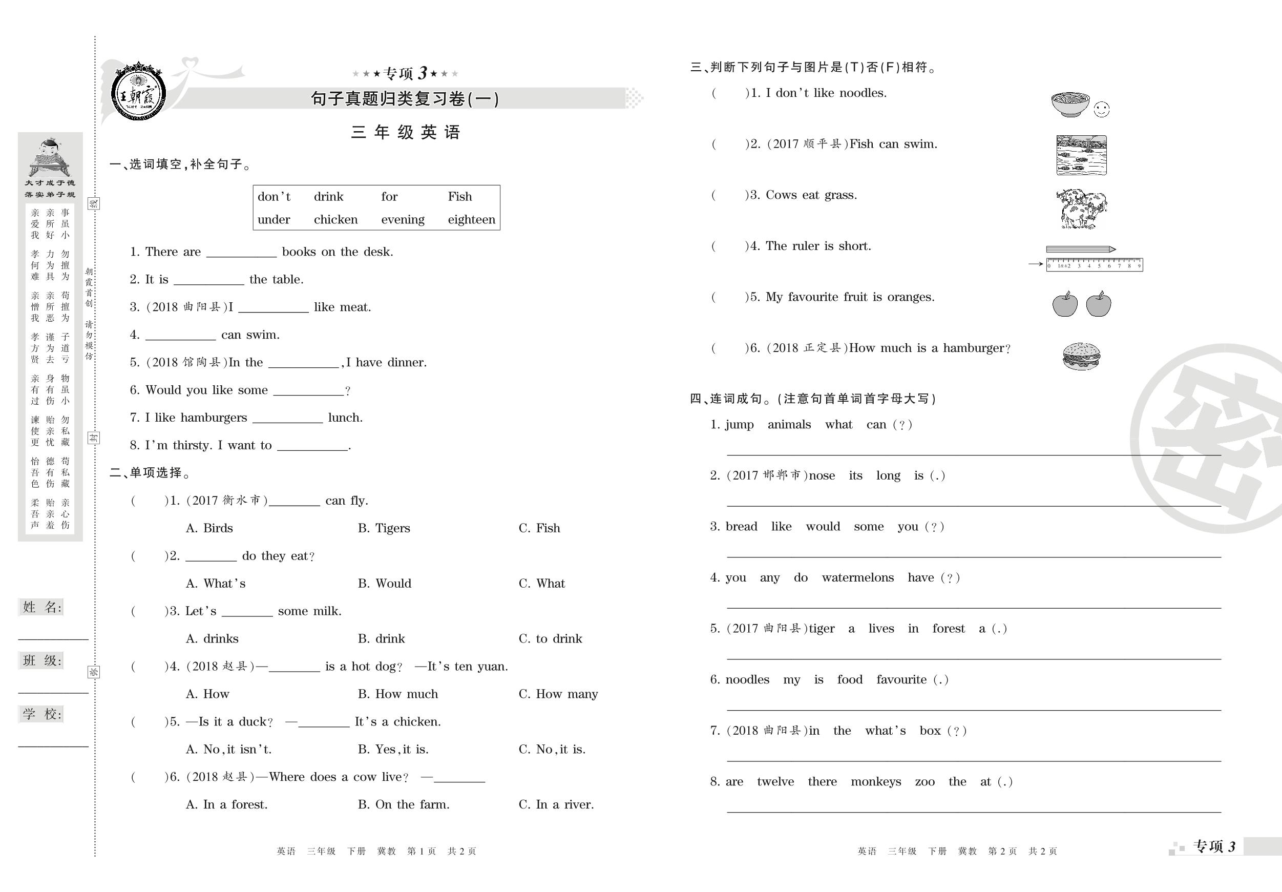 王朝霞期末专项卷——句子(一)(二)真题归类复习卷三年级下册英语(冀教版)_R210806191241【0】