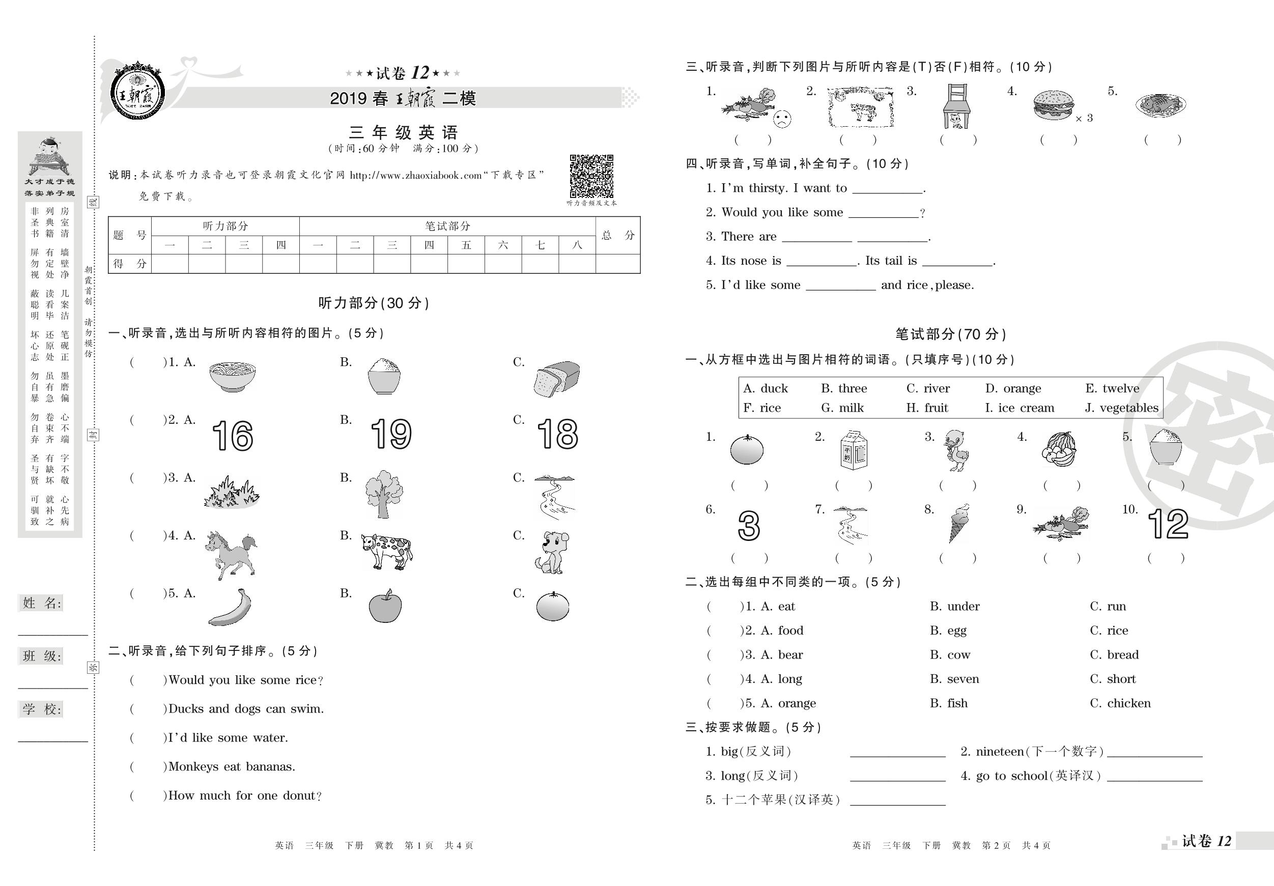 王朝霞期末模拟卷三年级下册英语(冀教版)_R210806191329【12】