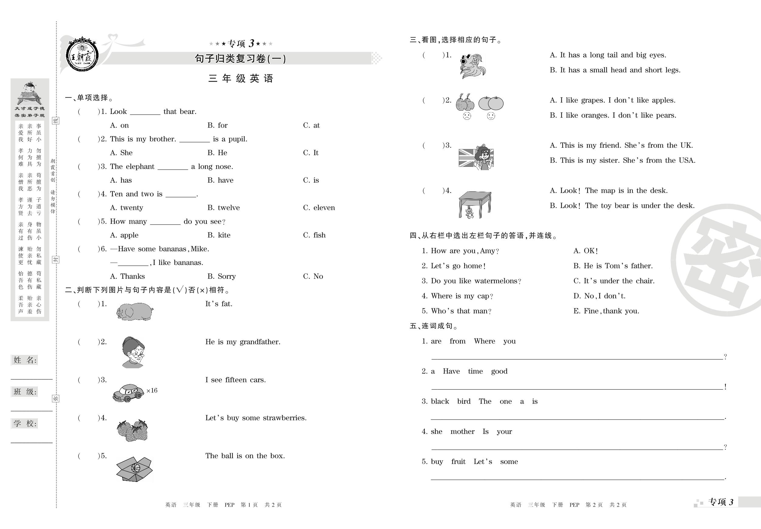 王朝霞期末专项卷——句子(一)(二)真题归类复习卷三年级下册英语(PEP版)_R210806191334【0】