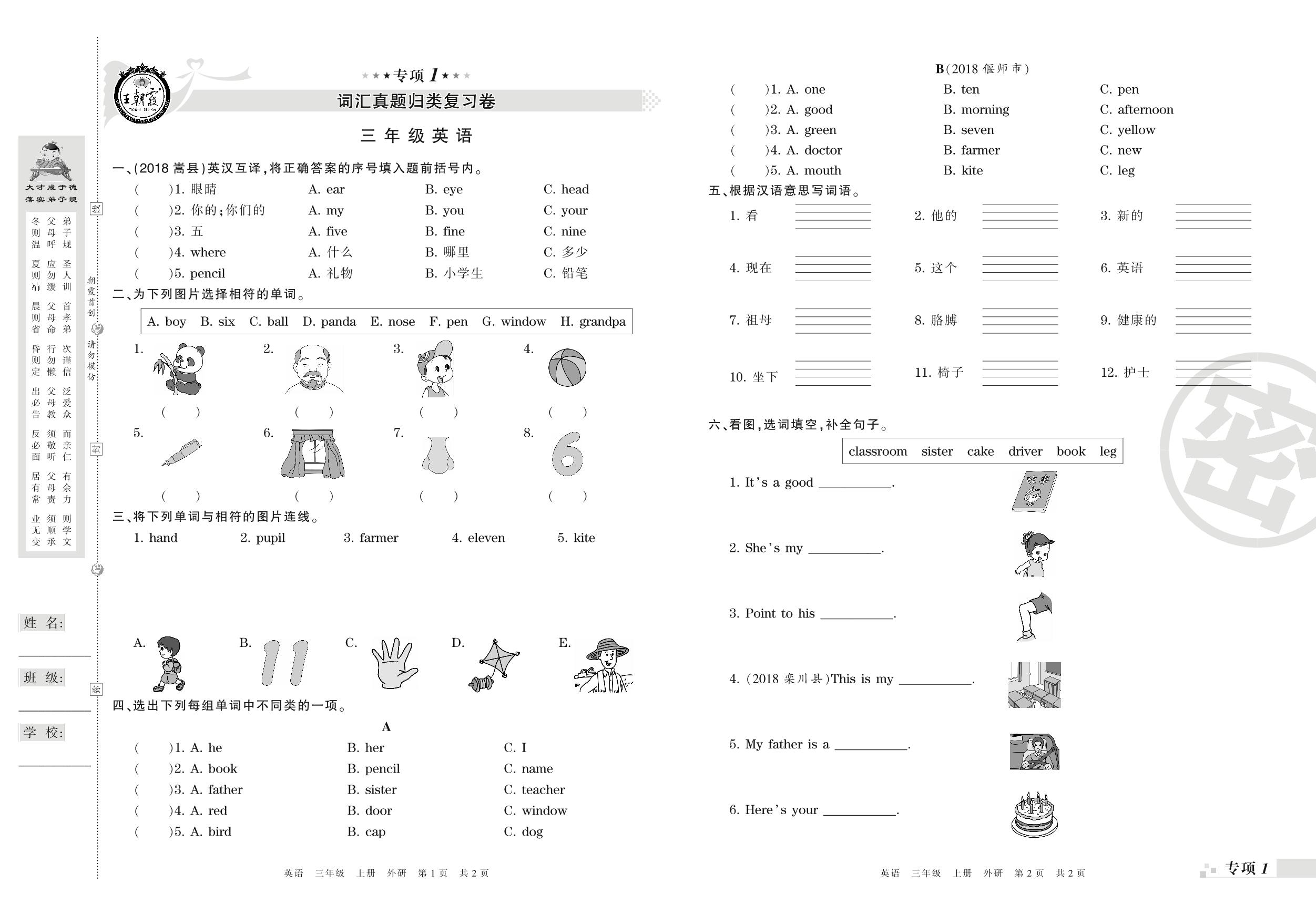 王朝霞期末专项卷——词汇、句子真题归类复习三年级上册英语(外研版)_R210806191429【0】