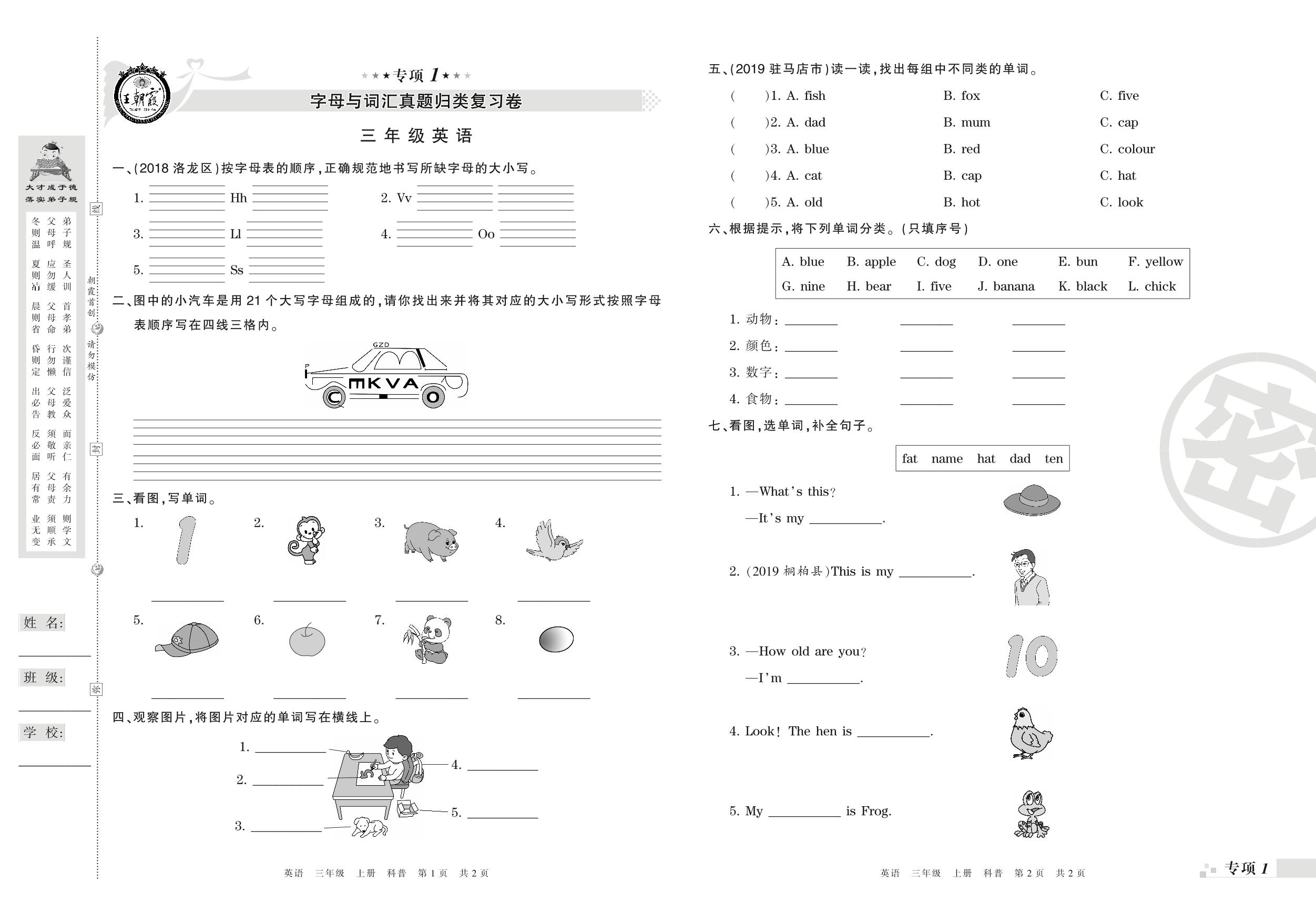 王朝霞期末专项卷——字母与词汇、句子真题归类复习三年级上册英语(科普版)_R210806191505【0】