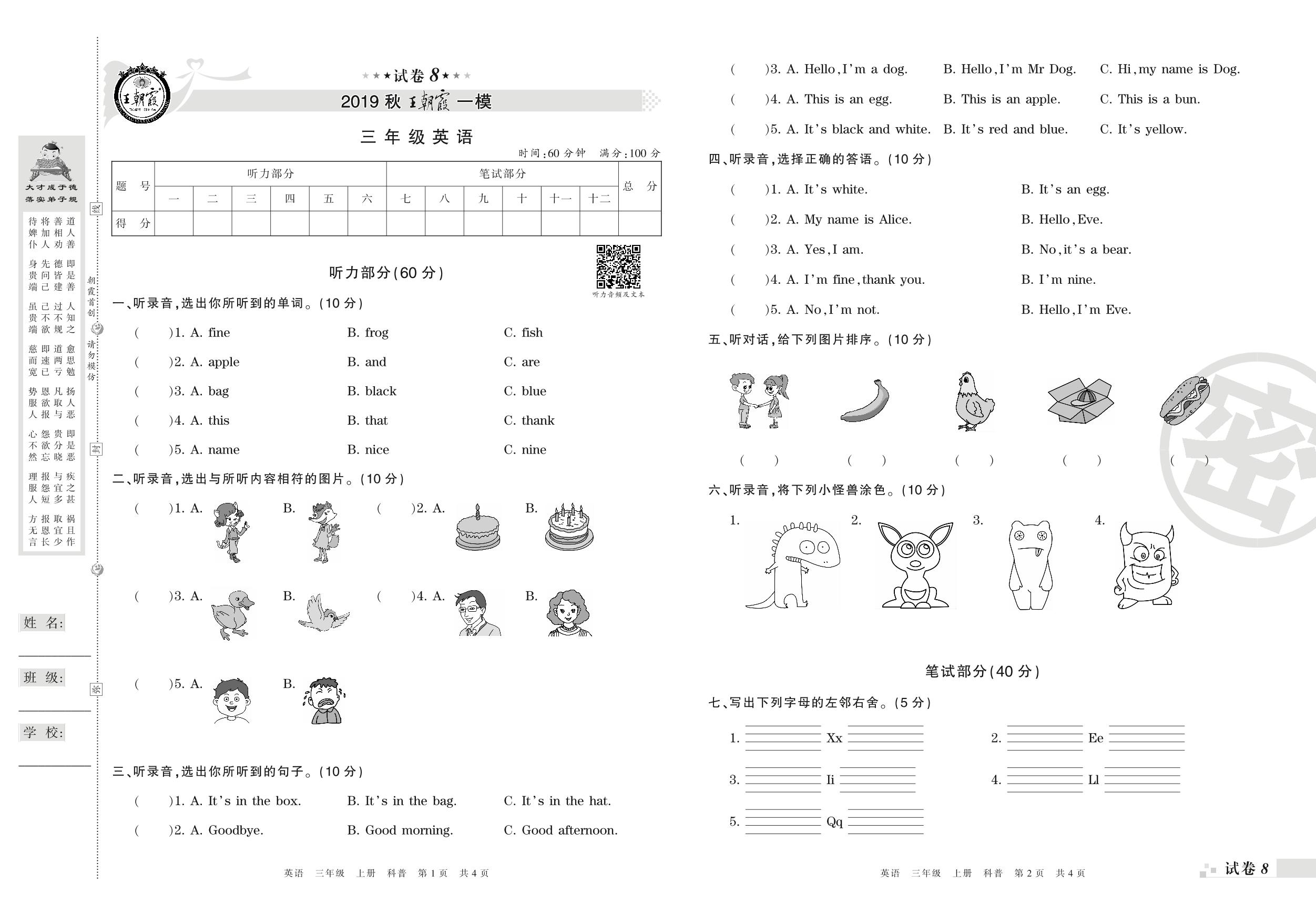 王朝霞期末模拟卷三年级上册英语(科普版)_R210806191529【8】